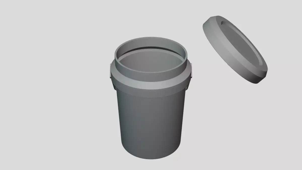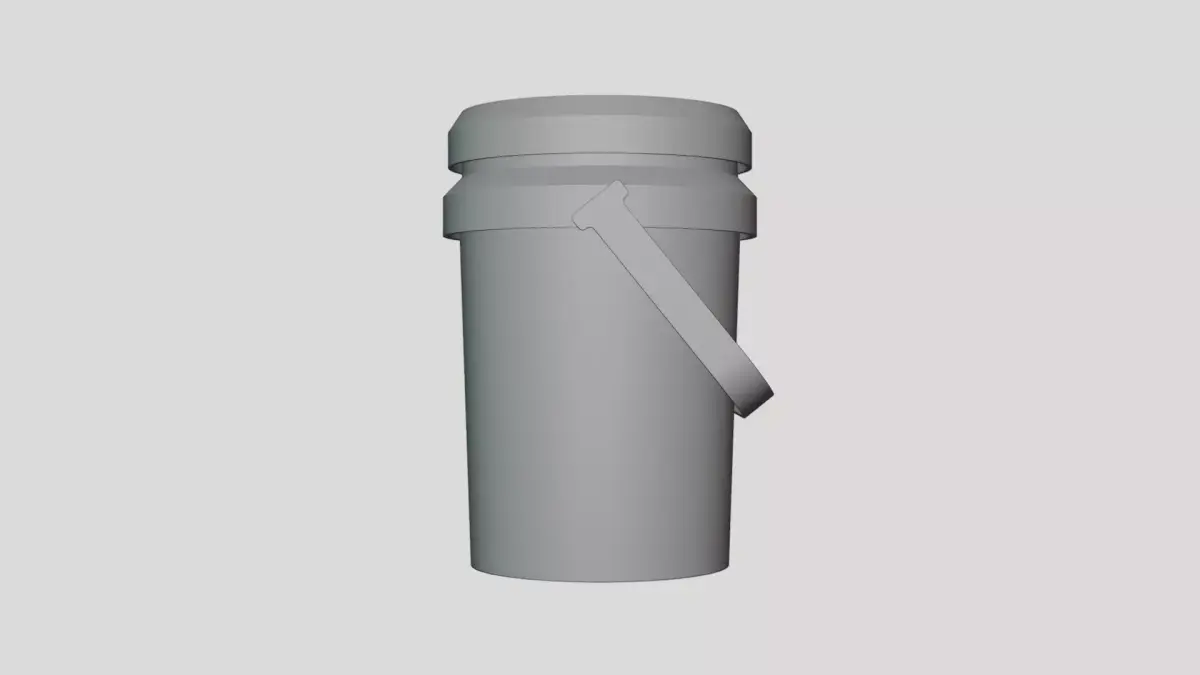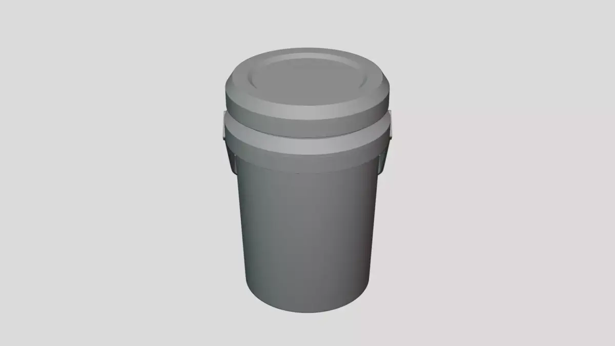 3D model of a plastic bucket with handle and detachable lid. Suitable for household products, cleaning tools, or industrial packaging mockups. All components are UV-unwrapped with non-overlapping topology for easy texturing. No materials or textures included.