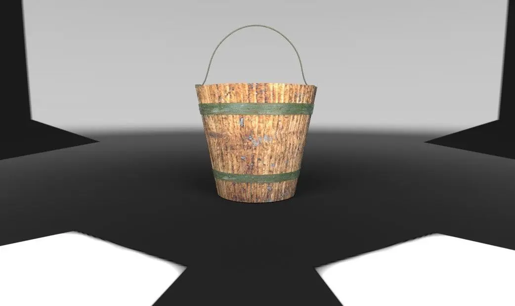 Realistic wooden Bucket. This is an asset created with all the maps. The file is created in Autodesk Maya 2020 and can be opened in any compatible packages.Mesh divided into groups and materials.Texture and materials made in Substance Painter 2017