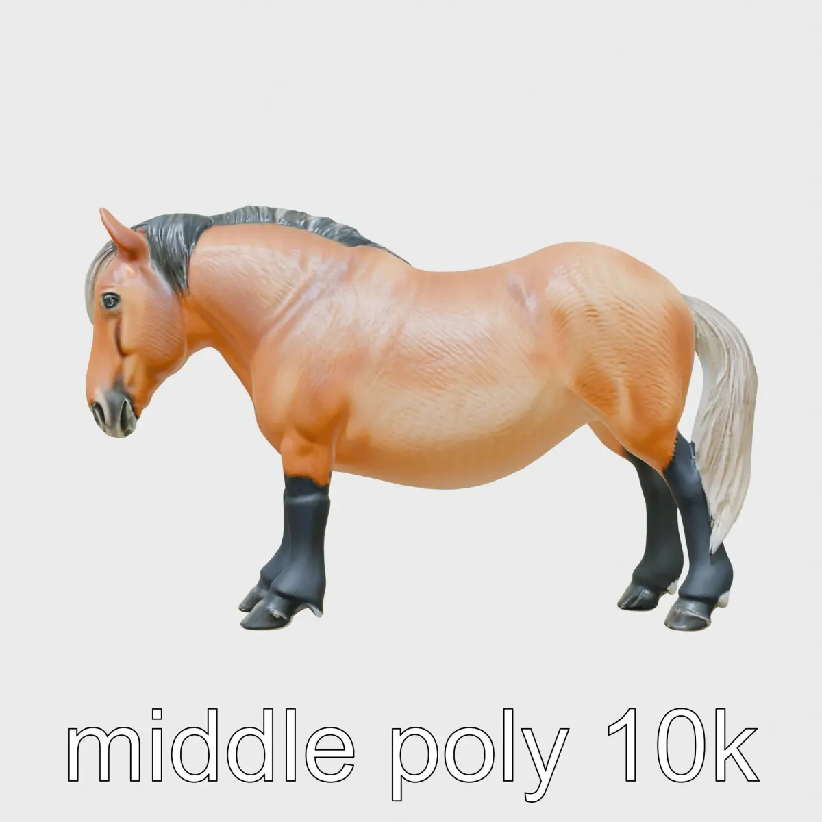 This 3D model of a Buckskin Morgan Horse features three levels of detail suitable for diverse applications. Ideal for production rendering in software like 3ds Max, Maya, Cinema4D, and Blender, as well as game engines such as Unity and Unreal, this model caters to various scenarios. Its PBR textures include Diffuse, NormalMap, and reflection/roughness/metallic, making it compatible with modern rendering engines. The model's accurate UV unwrapping ensures no overlapping. Perfect for animations, games, or interactive presentations, the model's realistic textures and characteristics bring authenticity. All textures are 4096*4096 in size. Please like and comment if you find the model appealing.