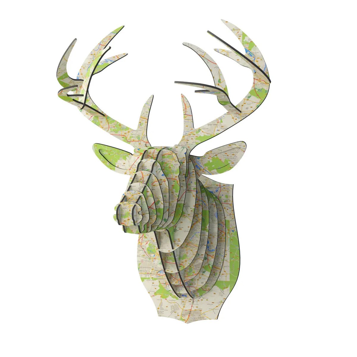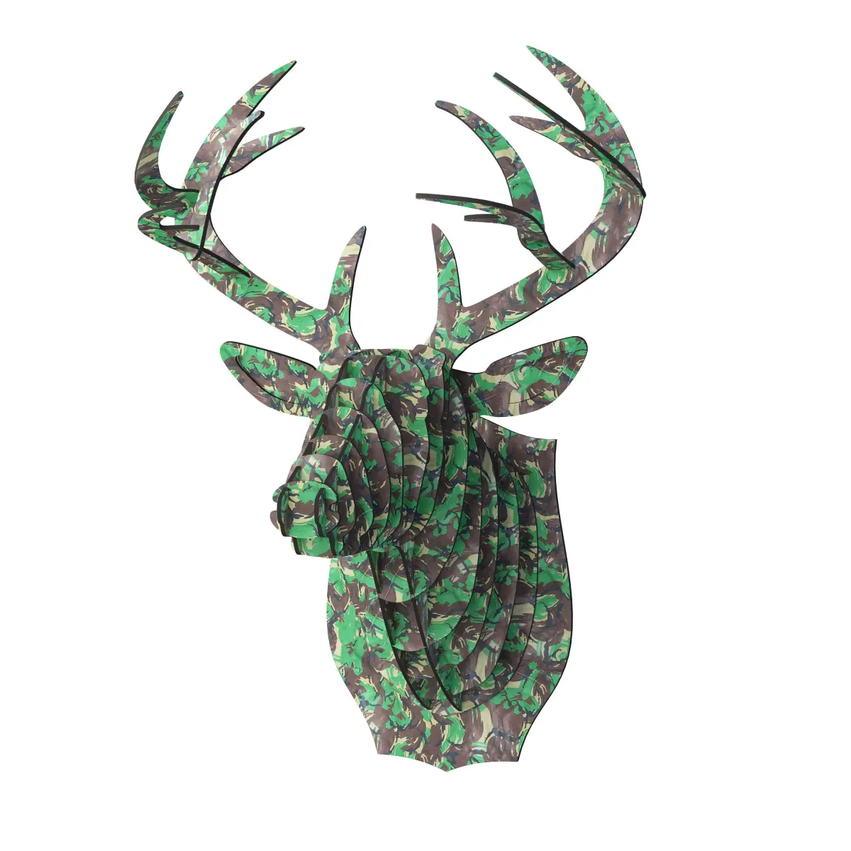 deer, head, cardboardsafari,trophy, animal,camouflage, art, sculpture, wall decor, cardboard, cartoon