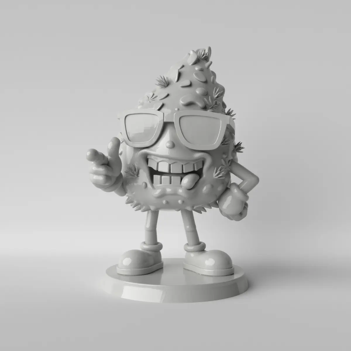A toy art-style sculpture of a cannabis bud turned into a friendly mascot, with eyes, a smile, and lots of good vibes. Perfect for those who enjoy cannabis culture, creative and laid-back decoration. Ideal for studios, alternative spaces, or as a fun gift for friends from the 420 universe.