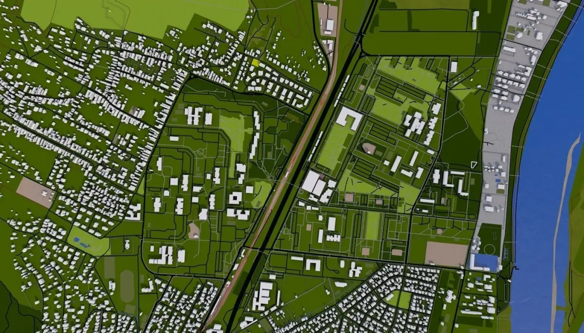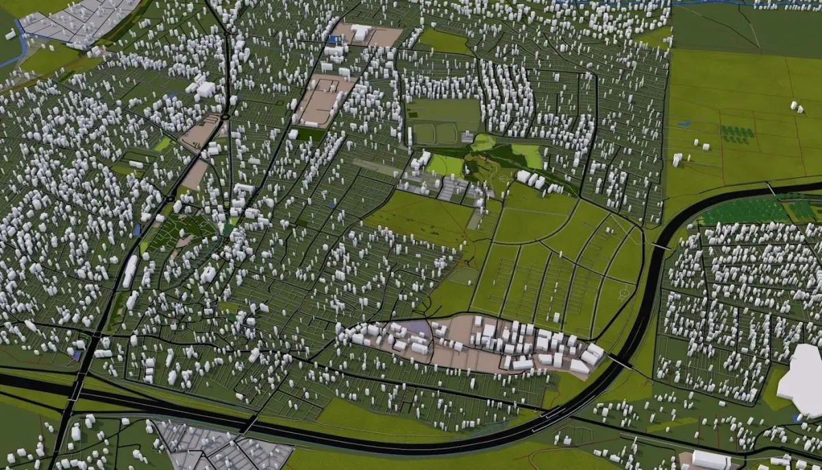 Clean heirarchy- Proper grouping according to the type of real world objects. Properly named objects and materials. Clean Flat UV map- Properly unwrapped UV for most of the objects. Some objects may have cubic mapping applied. Buildings are extracted from real world data. There are random buildings added to some areas where real world data is partially available (missing height details).