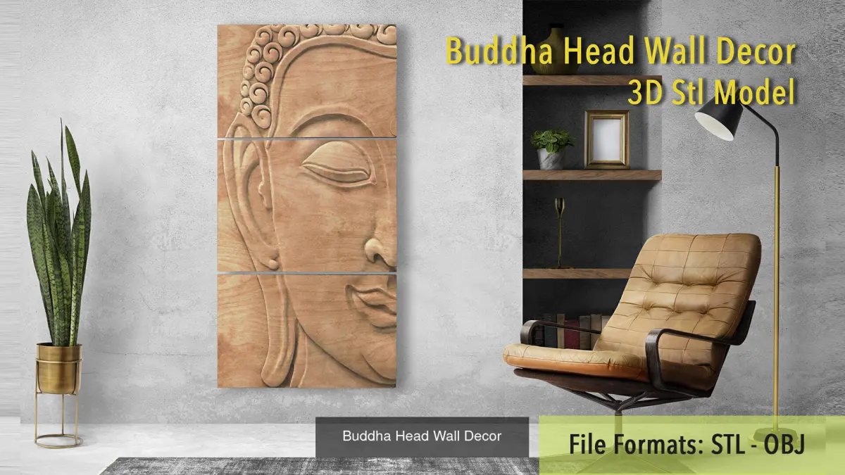 Buddha Head Wall Decor Set 3D Model Collection