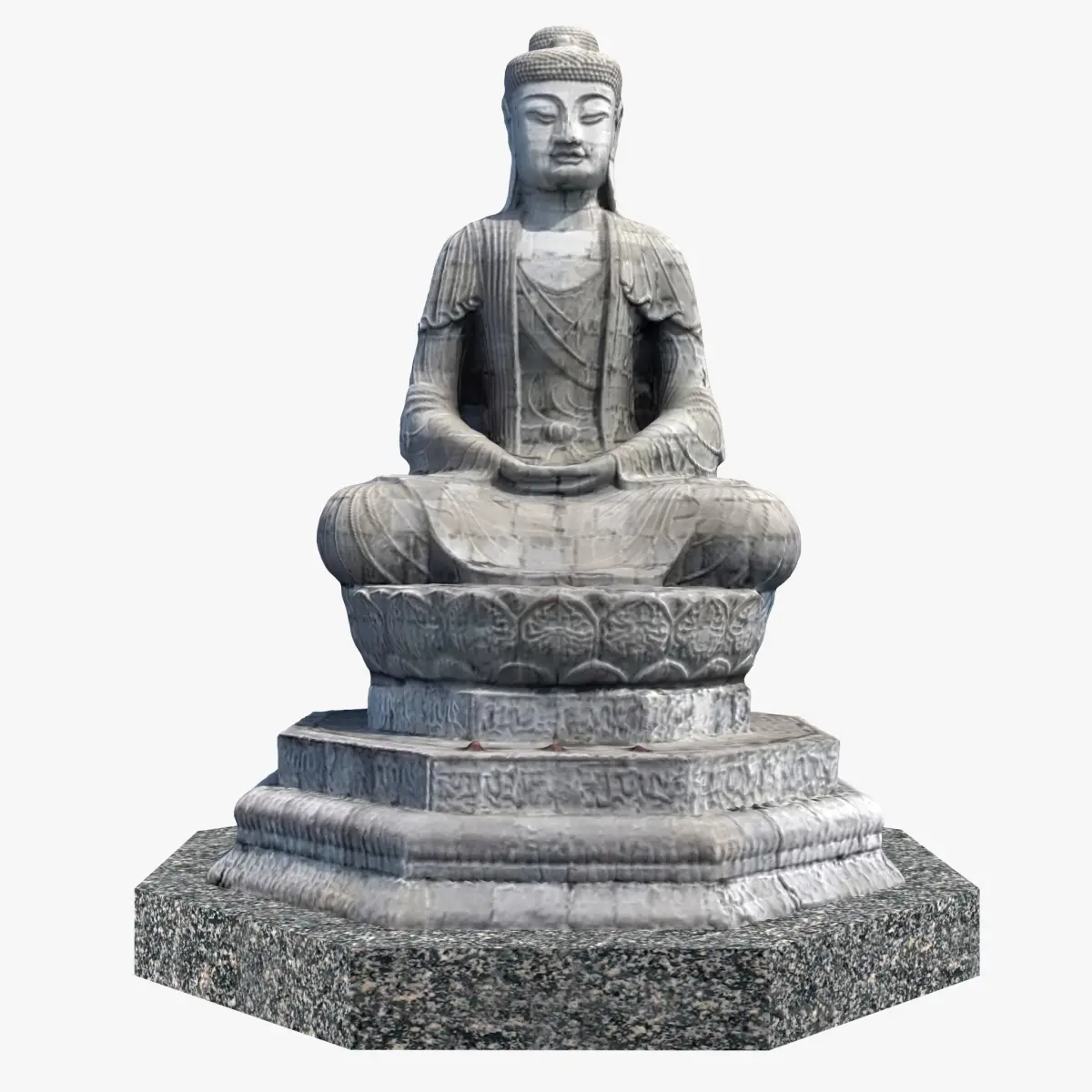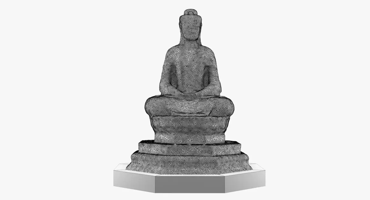 The presented 3d model is based on Buddha and is detailed for closeup renderings. Topology is sound and mainly composed of quads. The model is meant for subdivision but may also act as a base to edit and work on for game models.