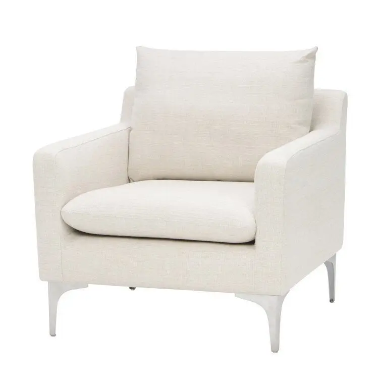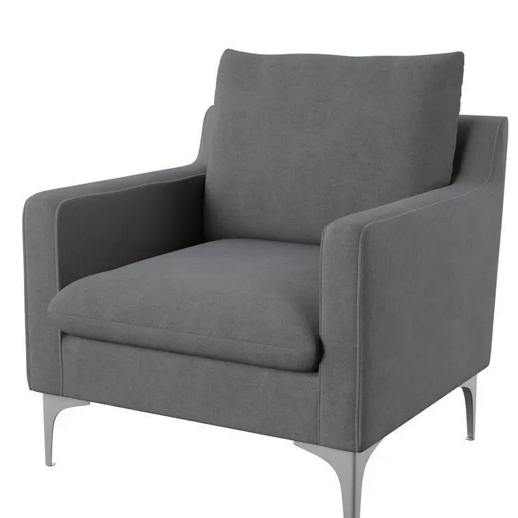 - Perfect for rounding out your ensemble with both a handy seat and a complimentary touch of style, accent chairs like this are a great option for rounding out any space. Crafted from a solid and manufactured wood frame, this armchair is wrapped in polyester upholstery for a padded touch while you sit. Square arms tapered legs lend this piece a clean-lined, modern look at home in a mid-century-inspired ensemble.