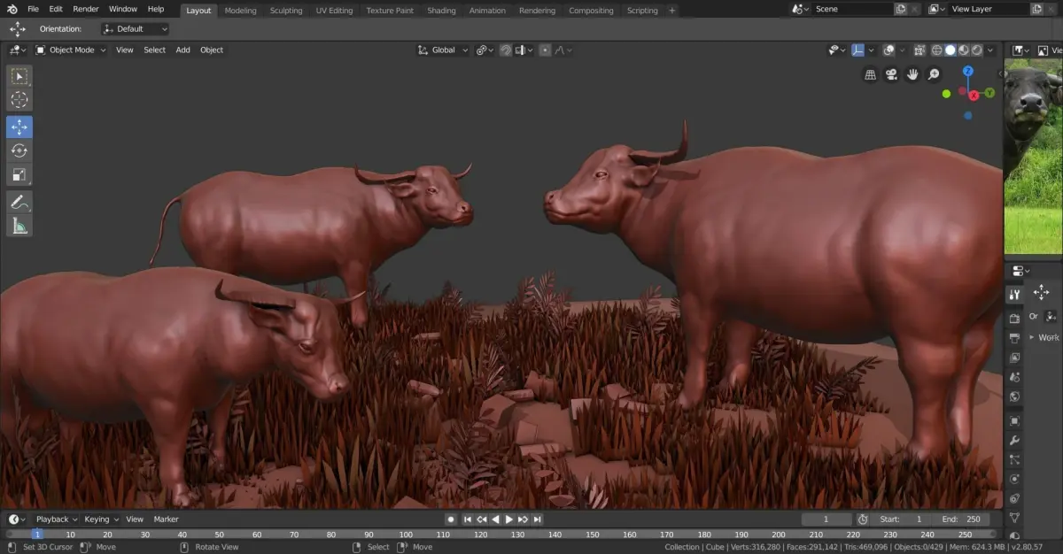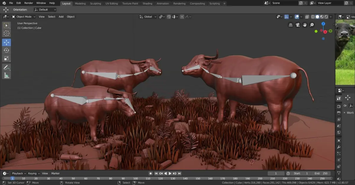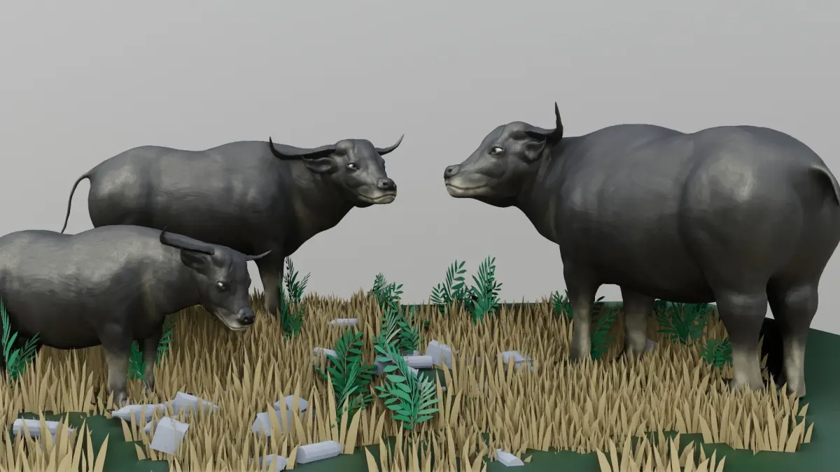 high poly hand paint buffalo modelmade in blender2.8low poly grassContact: