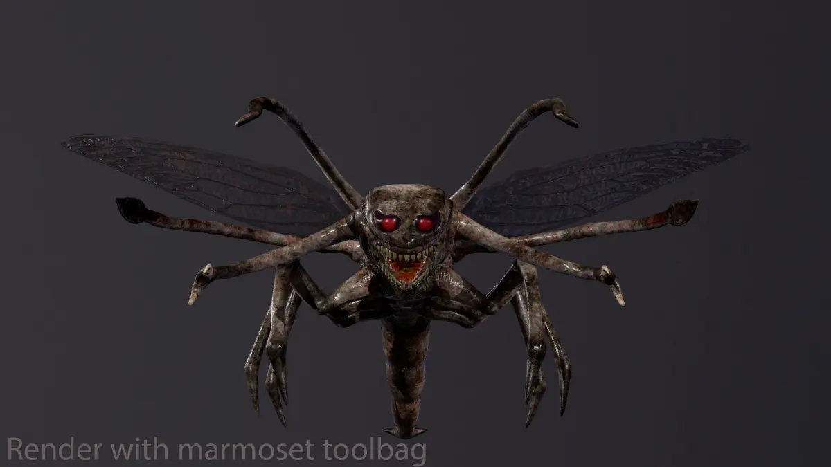 Low-Poly game-ready animated 3D model . Suitable for creating a game and cinematics. You can change the materials of the wings, and get more variations of the color of the monsters In the model it is desirable to use a shader with a two-sided display of polygons. The model has 3 skins