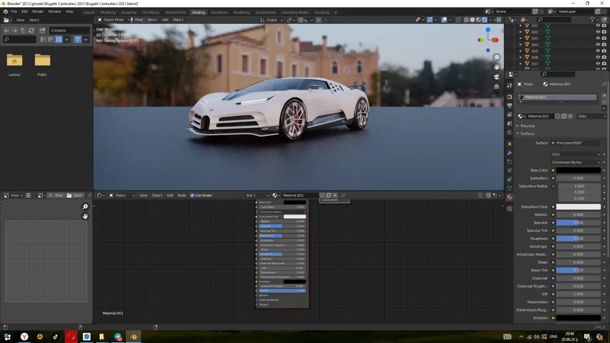 The Bugatti Centodieci is a limited production mid-engine sports car produced by French automotive manufacturer Bugatti. The car is a homage to the Bugatti EB110 and a celebration of the Bugatti marque's 110th birthday. It was revealed on 16 August 2019. The Centodieci is 20 kg lighter than the Bugatti Chiron, and has an 8.0 Lquad-turbocharged W16 engine, rated at 1578 hp. Production of the Centodieci was limited to 10 units priced at €8 million.Meet the Legend: Bugatti Centodieci - A 3D Model for True CollectorsDescription:Not just a model, this is a true treasure for any collector. We are proud to present the exclusive Bugatti Centodieci 3D model - the epitome of speed, luxury, and precision.Exceptional Detail: Each curve, line, and detail has been rendered with maximum accuracy, ensuring visually perfect renderings and animations.Realism at a New Level: Using realistic materials and high-resolution textures, we have created a model that conveys not only the car's appearance but also its unique feel.Optimized for Professionals: The model has been designed with professionals in mind, making it suitable for use in films, video games, advertisements, and other high-quality projects requiring realism.Exclusive Access: Only available on CGTrader, this model is a true gem for any collection.
