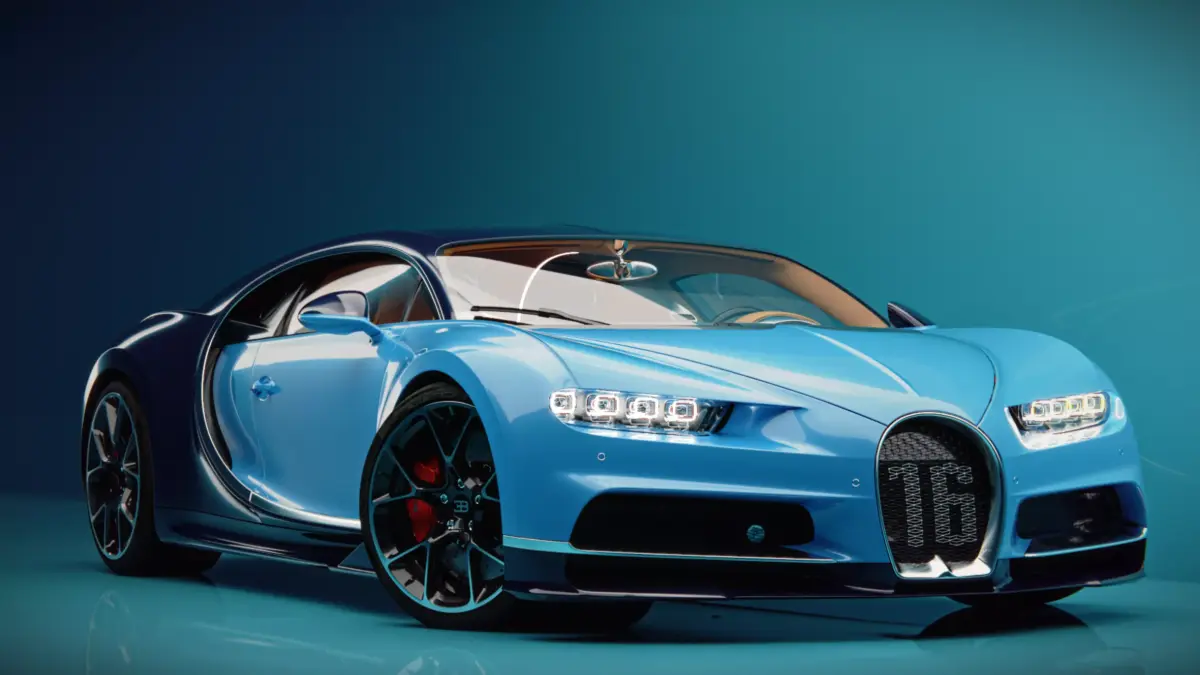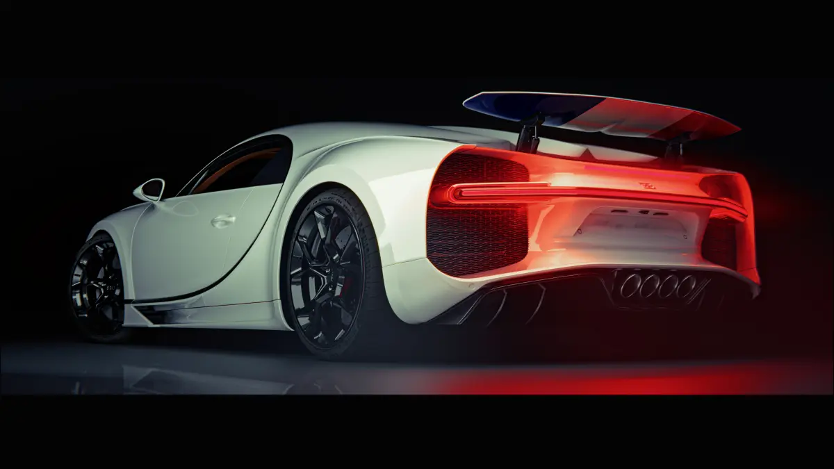 Bugatti Chiron in very high quality model entirely made on a blender with the animated wing and the rig of the car.