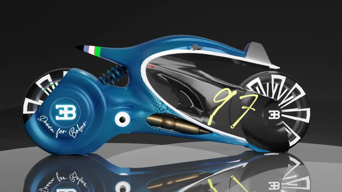 Bugatti motocycle 3d model for blender or more programms. High poly, UV editor, shading, lighting any have this model!I can change the flag, number and name if you want!!!