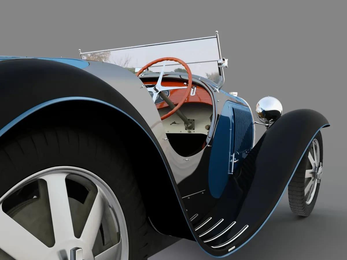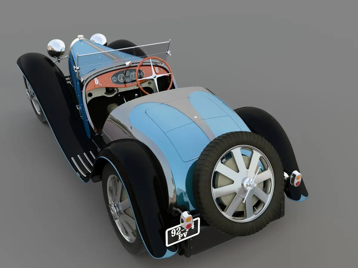 Bugatti Type 55high polygonal 3d model.realistic materials v raythere are texturescan be used for video and static renderings.not suitable for gaming engines.