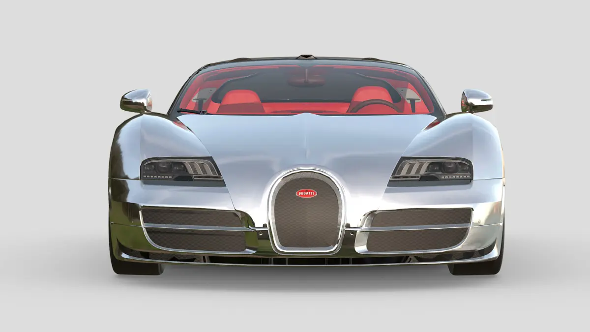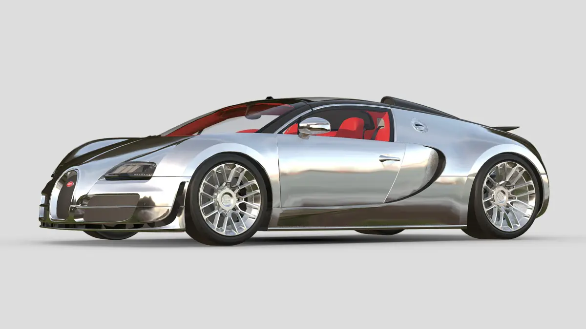 This is a highly detailed 3D model of a Bugatti Veyron in a stunning full aluminium/chrome finish, paired with a striking red interior—an exceptionally rare and special spec that exudes luxury and performance. Every curve, surface, and element has been crafted to reflect the car’s iconic presence and engineering excellence. Whether you’re adding it to a high-end car collection, a showroom visualization, or a cinematic render, this Veyron stands out with its mirror-like bodywork and bold contrast interior.