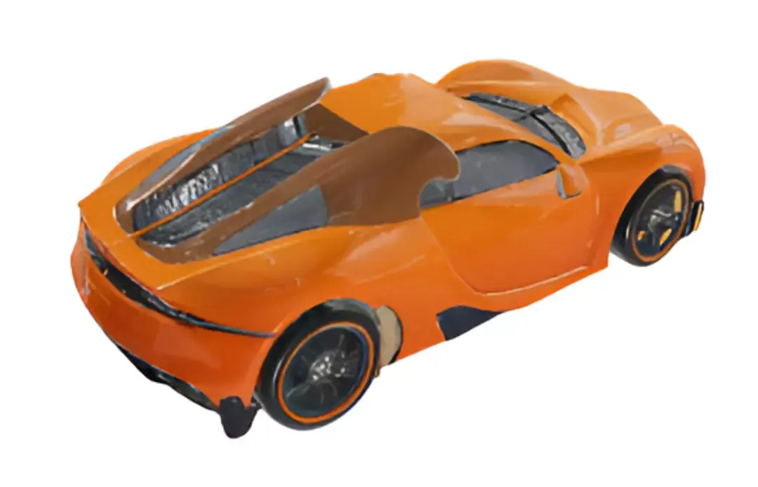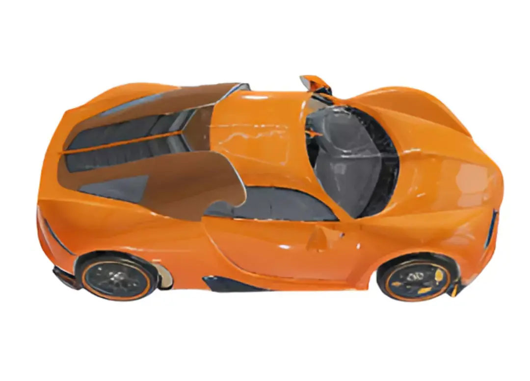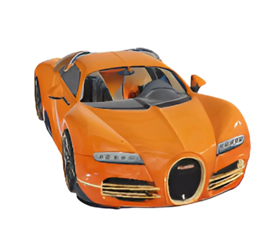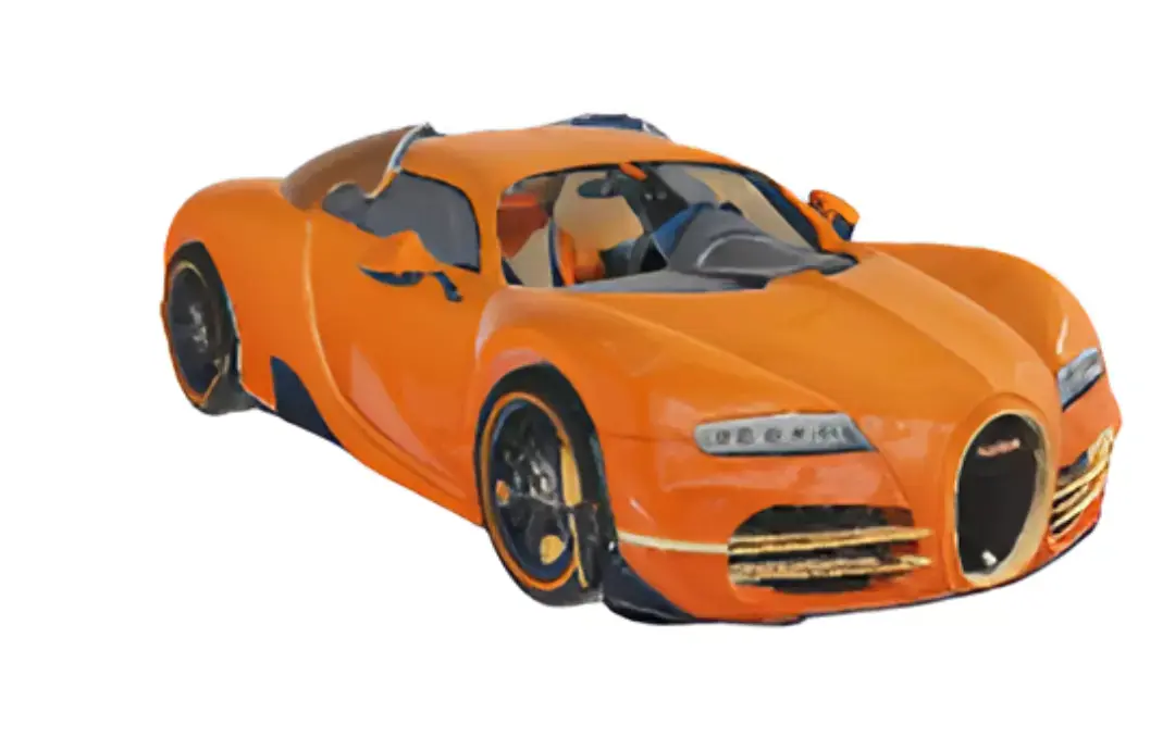 This 3D model is a faithful and detailed representation of the iconic Bugatti Veyron supercar, captured in a striking front-on view. The model is finished in a vibrant, glossy orange paint that accentuates its powerful and luxurious design. Key features include the unmistakable horseshoe grille, rendered in a detailed gold-toned mesh, flanked by large air intakes and intricate headlight assemblies. The car's low profile and aerodynamic body are perfectly captured. This model is an excellent asset for automotive visualizations, high-end product renders, or any project requiring a symbol of speed, luxury, and engineering excellence.