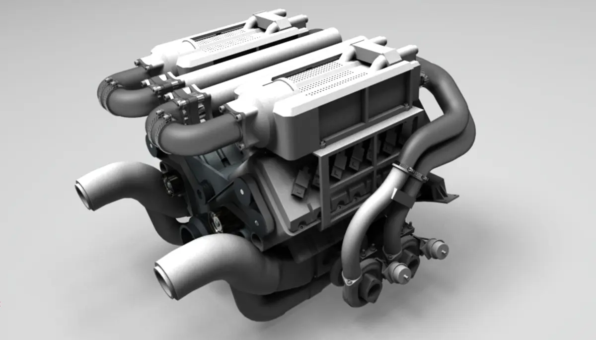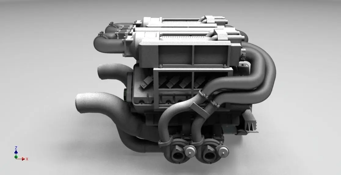 Bugatti Engine-W16 Engine Configuration 4 Turbochager, 16 cylinders with W engine configuration 16 pistons, the angle between the connecting rods in one cylinder block is 15◦, and the angle between the right and left block siliders is 45◦