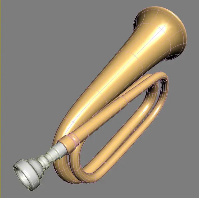 High poly 3d model of a Bugle. Utilizes only standard materials and requires no additional plug-ins.
