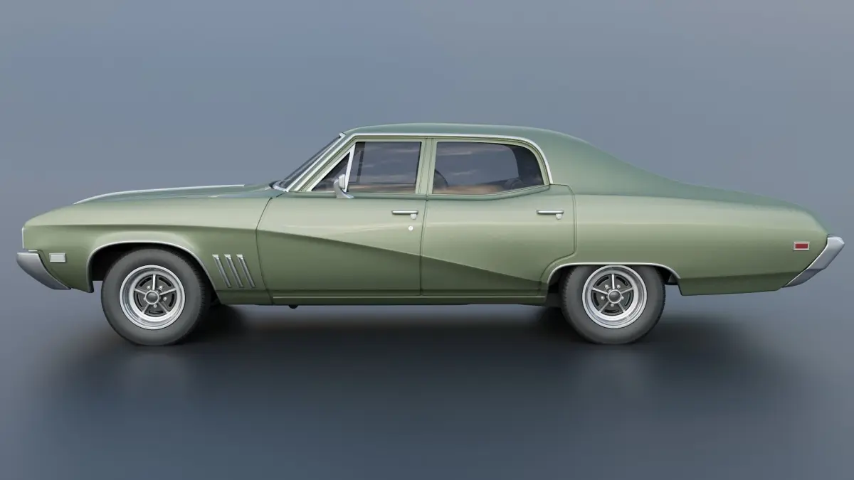 The model includes •Body •Body without hood •Hood •Body divided into 4 parts •Grille •Interior •Chassis •Wheels •Tires •Windows and glass for headlights and taillights
