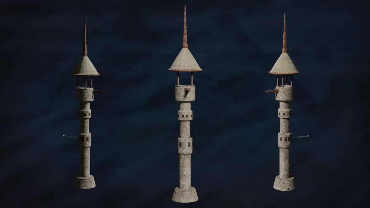 A minimalist, semi-realistic 3D watchtower asset, ideal for rendering, designs, and games.
