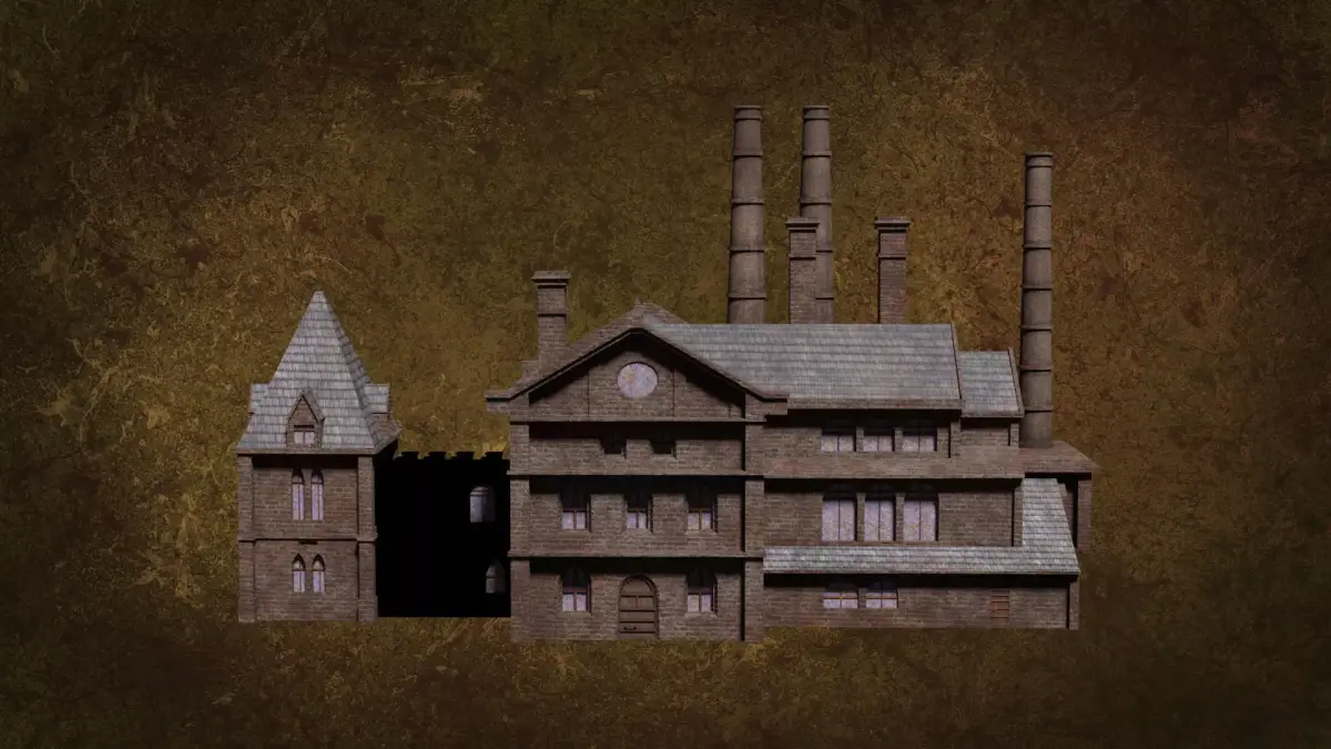 Model organized into two parts: the building and the fences, each with its assigned material and respective textures.