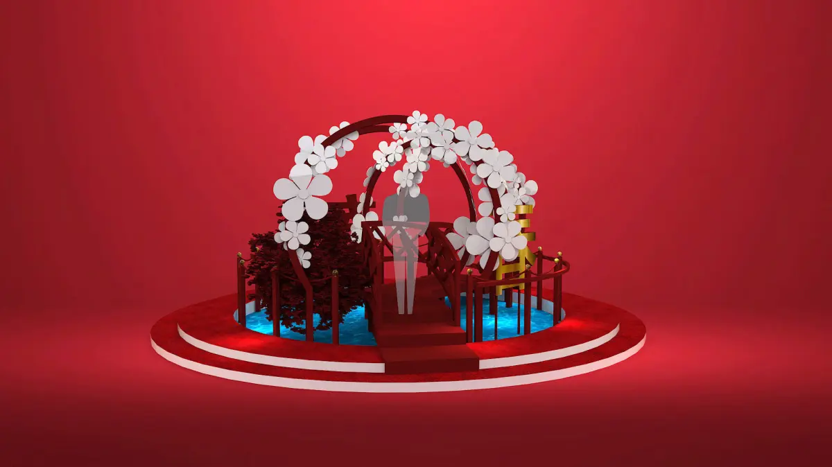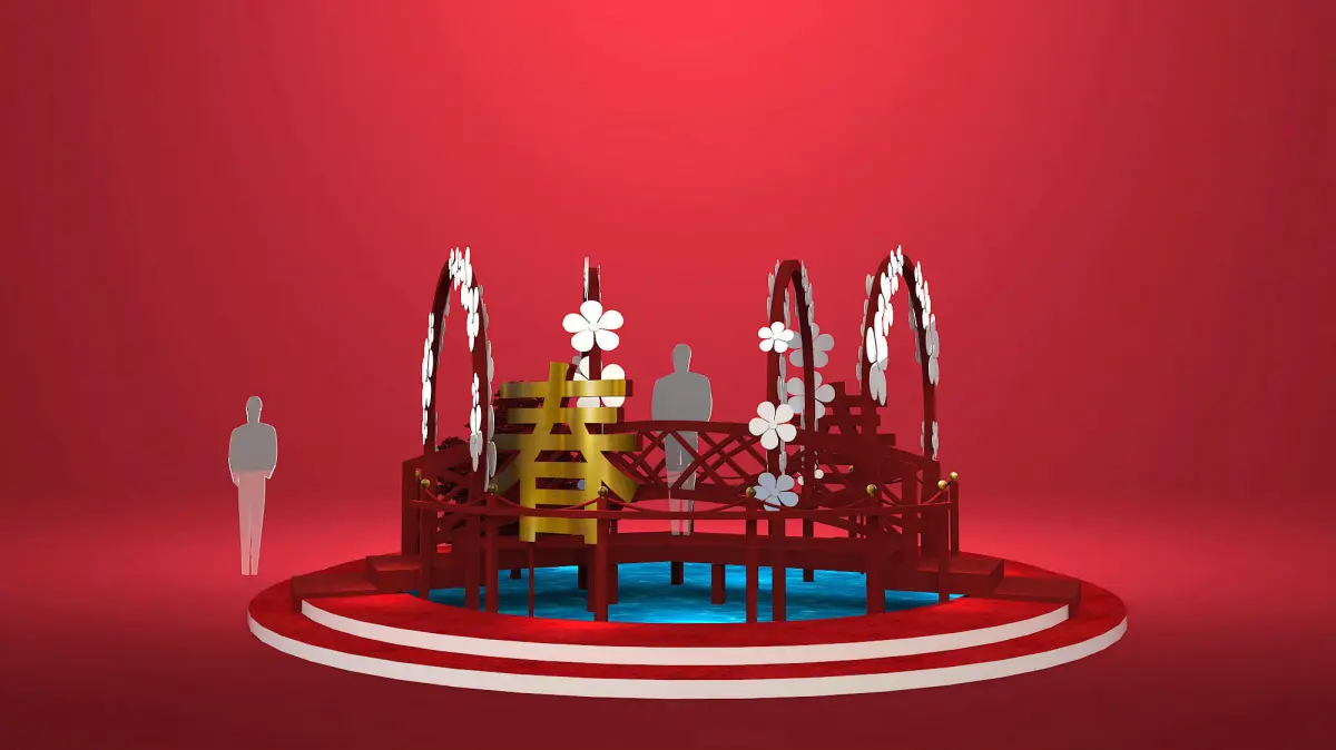 Custom build Chinese New Year Static Signage Display stand theme Bridge of Wealth" Best for photo taking stand, exhibition, event, festive decoration. Size: 3025mmH x 7200W x 7200D each. Comes with line elevation and layout plan for costing.