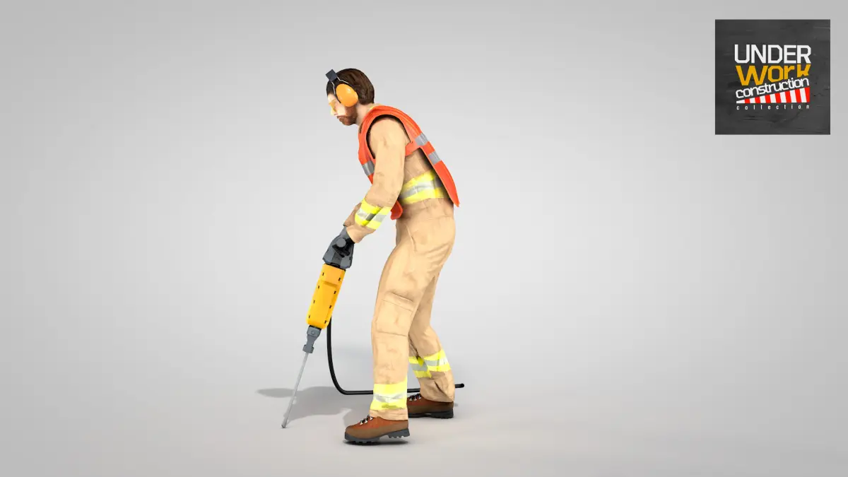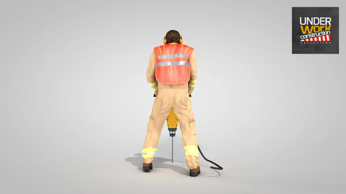 Builder with jackhammer made in Cinema 4D R19 in poly mesh and exported to dae, fbx, stl, obj files.The textures are in 4k UV mapping and contain color, bump and normal maps in this item.The builder's movement is with virate in Cinema 4D and only in Cinema 4D does the hose move as well.The headset, glasses, vest and jackhammer are placed on the skeleton that moves.The size of the object is real, the builder is approximately 1.75 tall.I hope you like it and that it is useful in your scenario.Thanks for visiting, renatodalle.