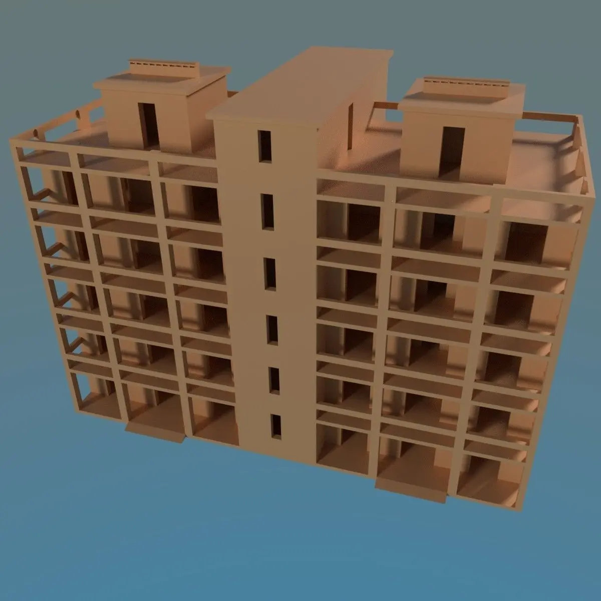 Simple model. I think what looks like in Urban Asian style (Japan, China, etc.) ЗмінитиThe apartments are small, the first floor is not inhabited, 4 apartments on the floor, a elevator shaft, without a basement.It consists of several parts as a сonstructor.