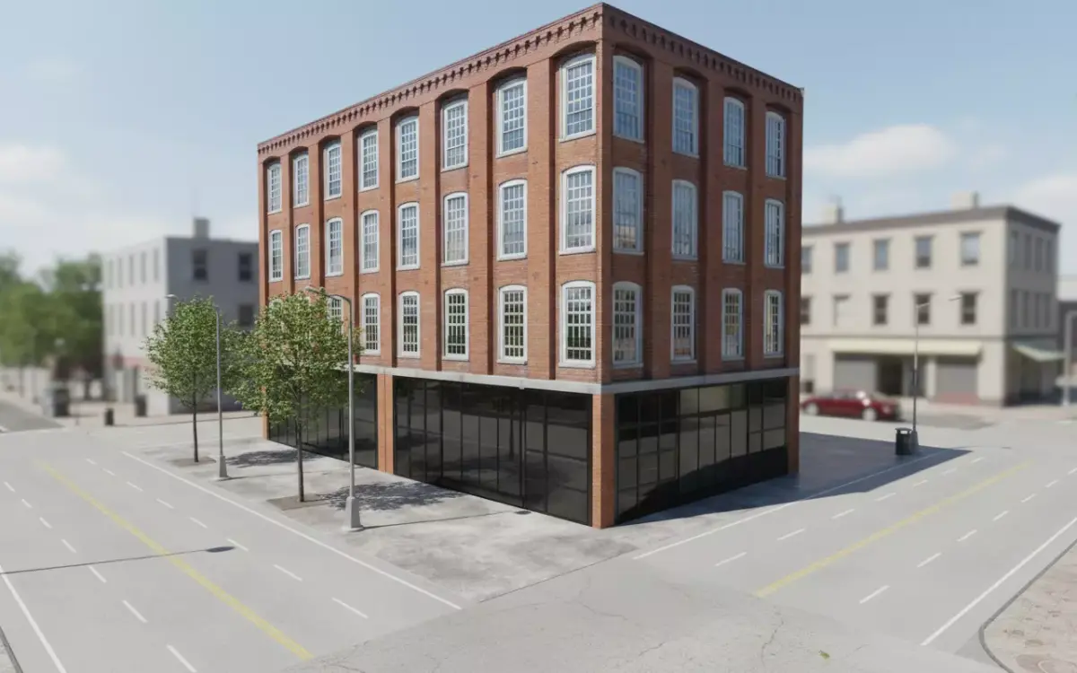 This low poly brick commercial building 3D model is perfect for urban city scenes, architectural visualization, games, and simulation projects. The model features a realistic red-brick facade, large glass storefronts, and detailed corner architecture, making it ideal for downtown environments, street visuals, and background assets.