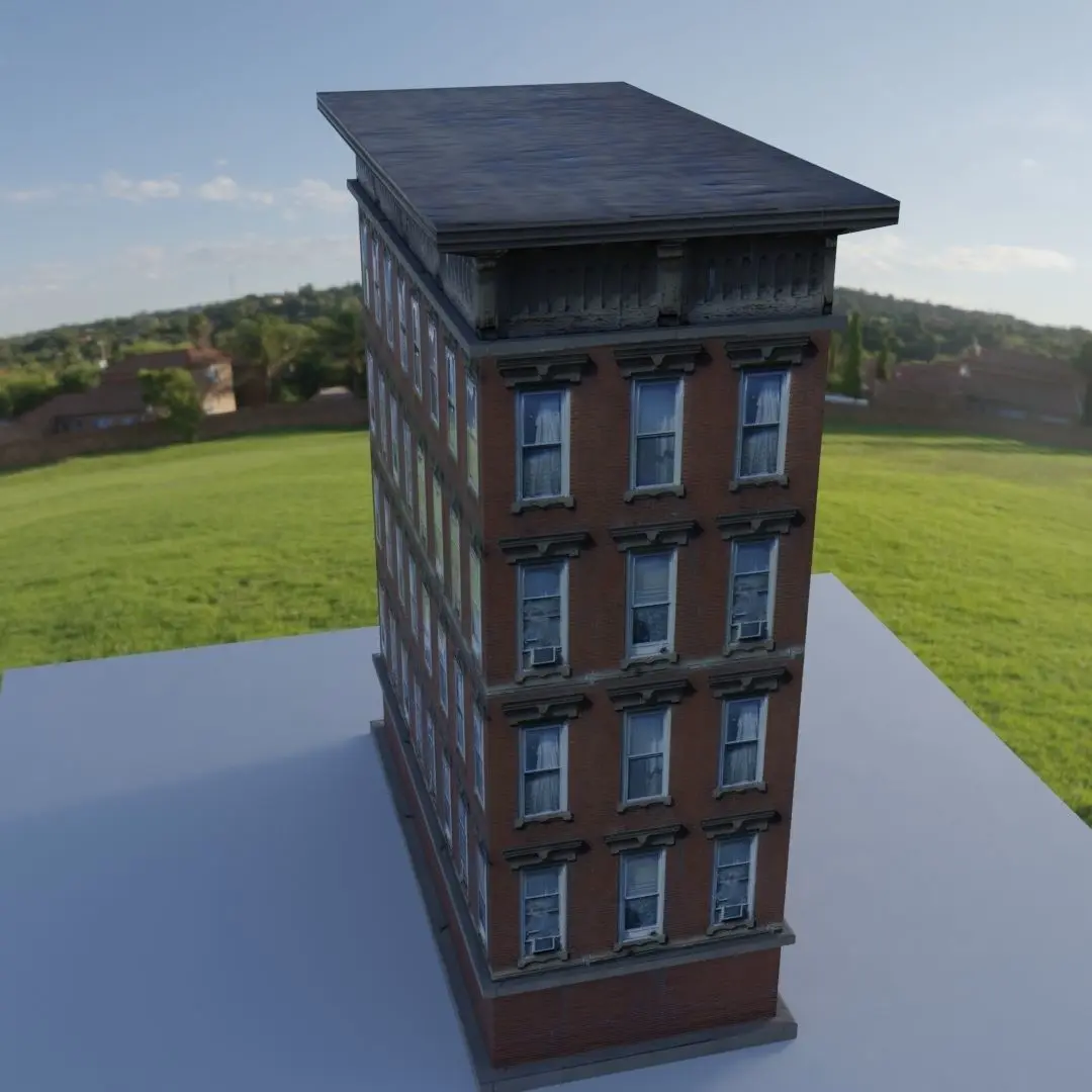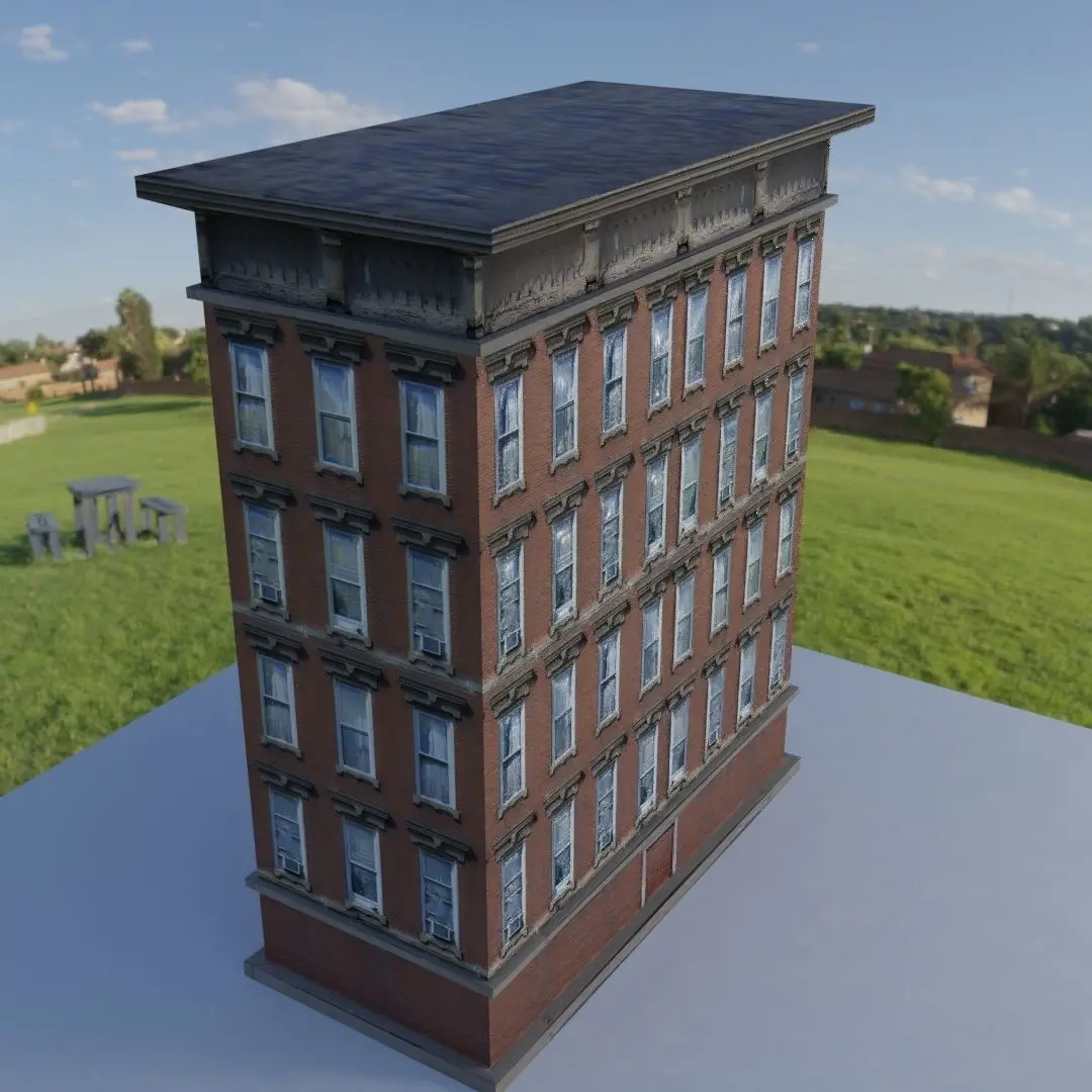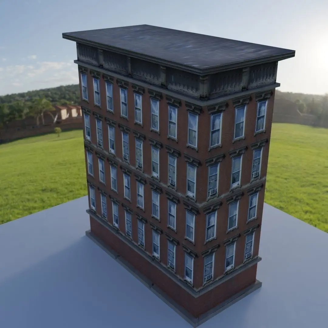 Lowpoly Building 3D model. Simple geometry Textured.
