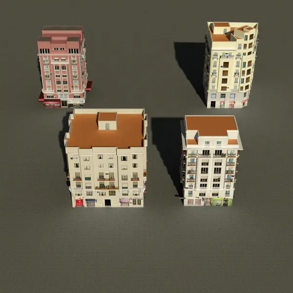 Photorealistic and High Detailed Low Poly Building Collection 37-40