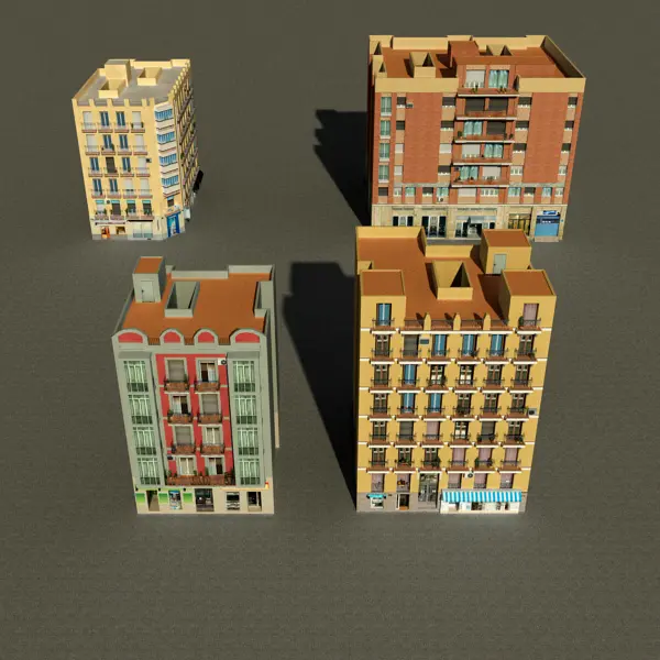 Photorealistic and High Detailed Low Poly Building Collection 93-96
