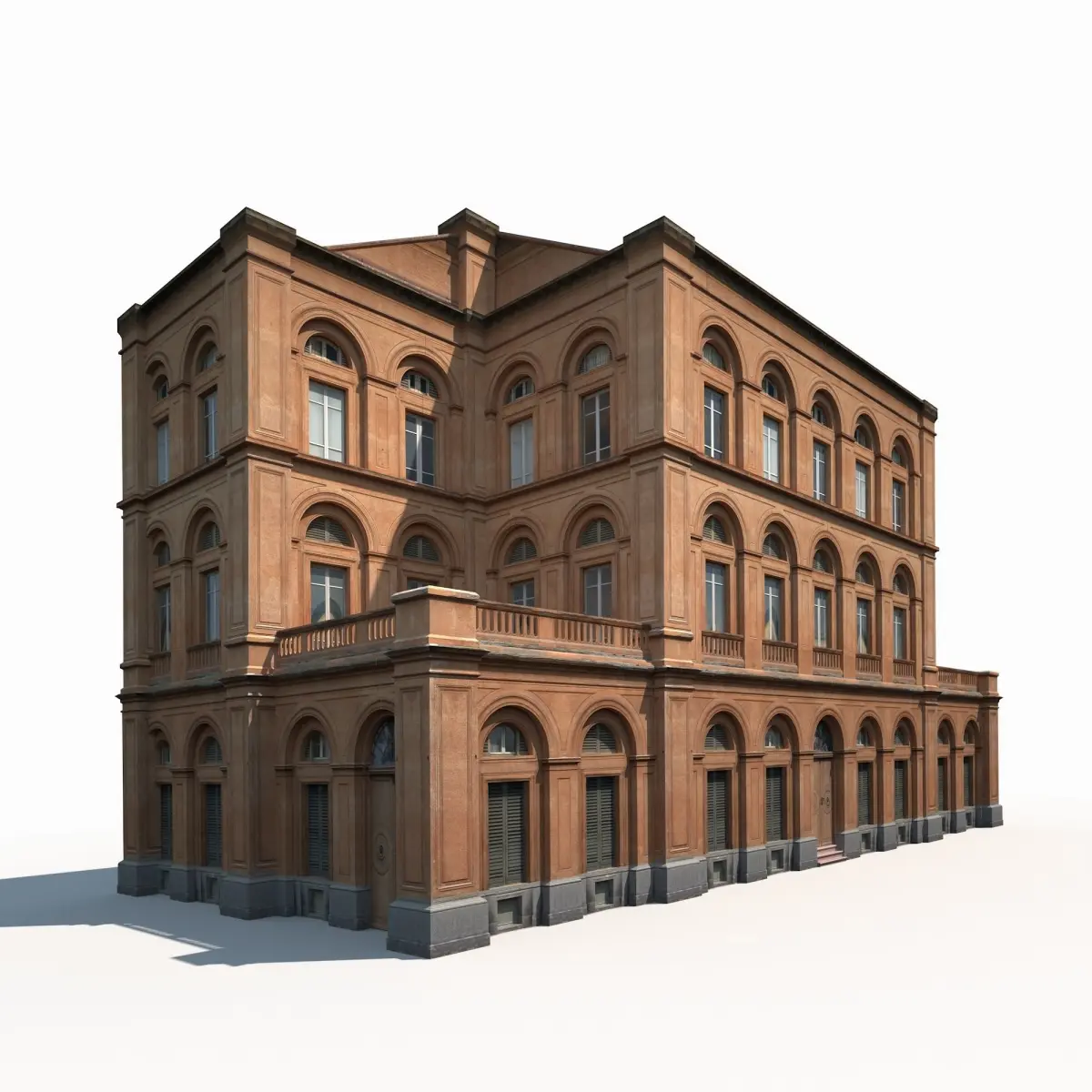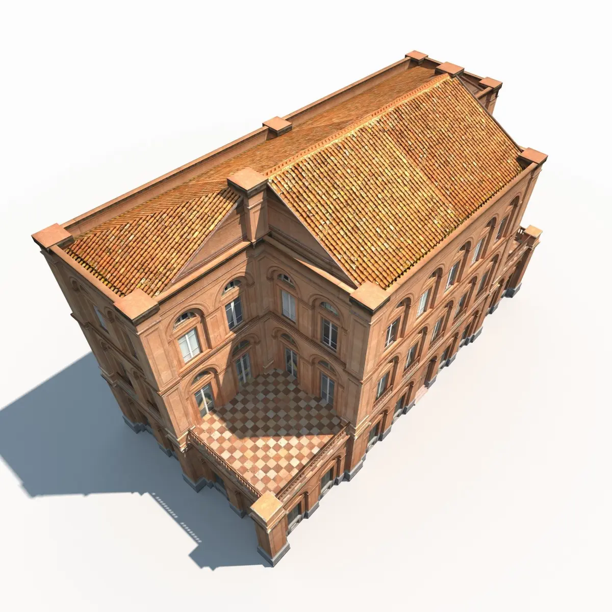 A 3D model of a low poly old buildings. Exterior only, no interior.