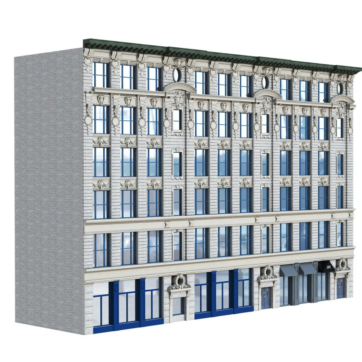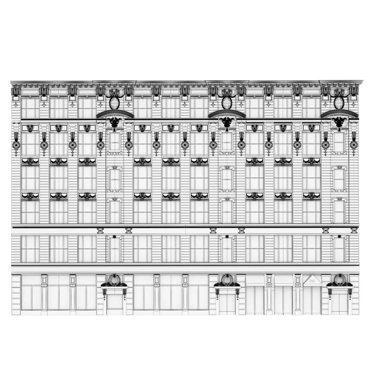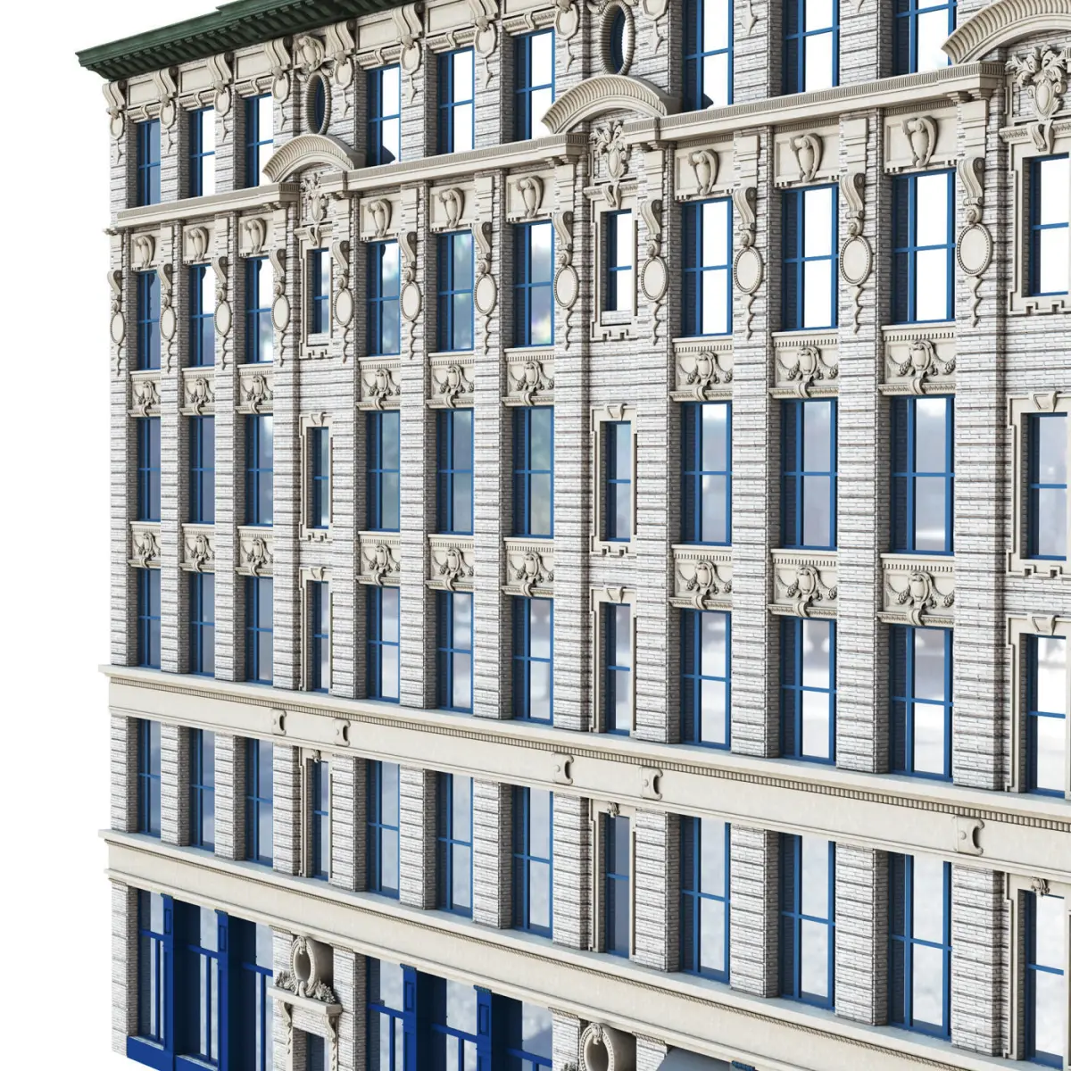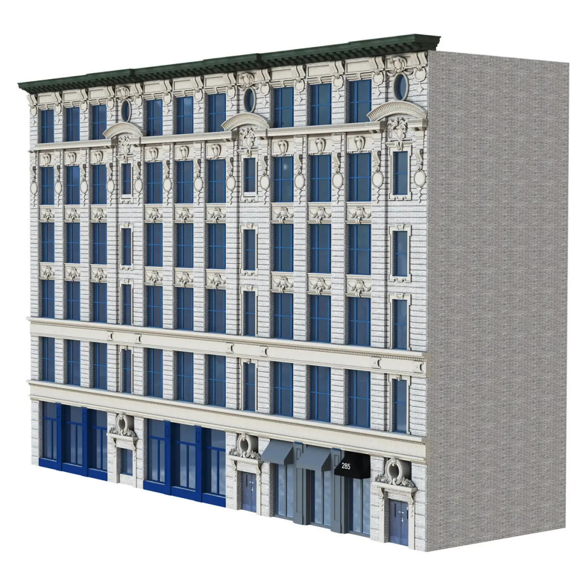 Facade of the building 285 West Broadway NY USA. Turbosmooth is enabled for rendering only. Facade stucco - instances to reduce the weight of the archive. Floors are present.
