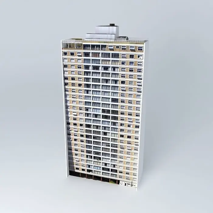 This 3D model was originally created with Sketchup 7 and then converted to all other 3D formats. Native format is .skp 3dsmax scene is 3ds Max 2016 version, rendered with Vray 3.00 Edificio Santa Tecla, 25 storeys, modernist style built in the 50s.