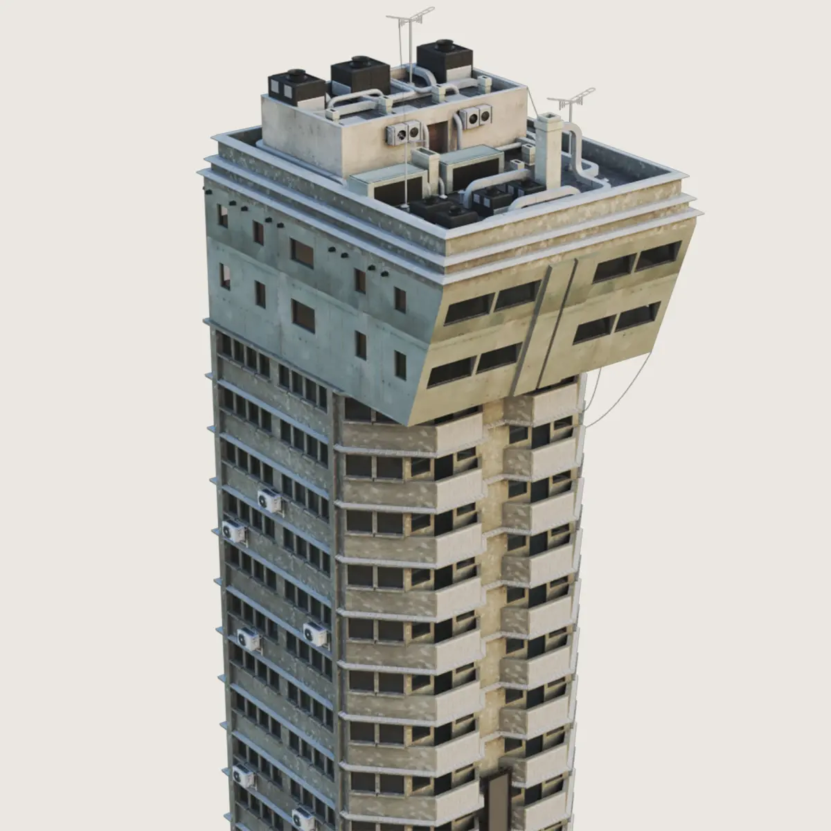 Model is ready to render with materials and textures as a VRay Scene in all of the main software applications (3DS Max, Maya, Cinema 4D, Houdini). Native scene is only in 3DS Max and can be edited only there. Was made for closeup, mid level, background, aerial and street level shots, additional rooftops were placed accordingly. Model is ready to work within Day and Night lighting. Has an internal structure, walls inside, ceilings helping to achieve realistic lighting behavior. Possible to add internal night lighting per area or room. You will never see through the building. Some buildings in the City Generator package have garages and underground parking for better ground blending. There are billboard placed for your local commercial space usage (your own big size print commercials). There is a dirt layer, world scale noises which will only make the building look differently based on its placement.