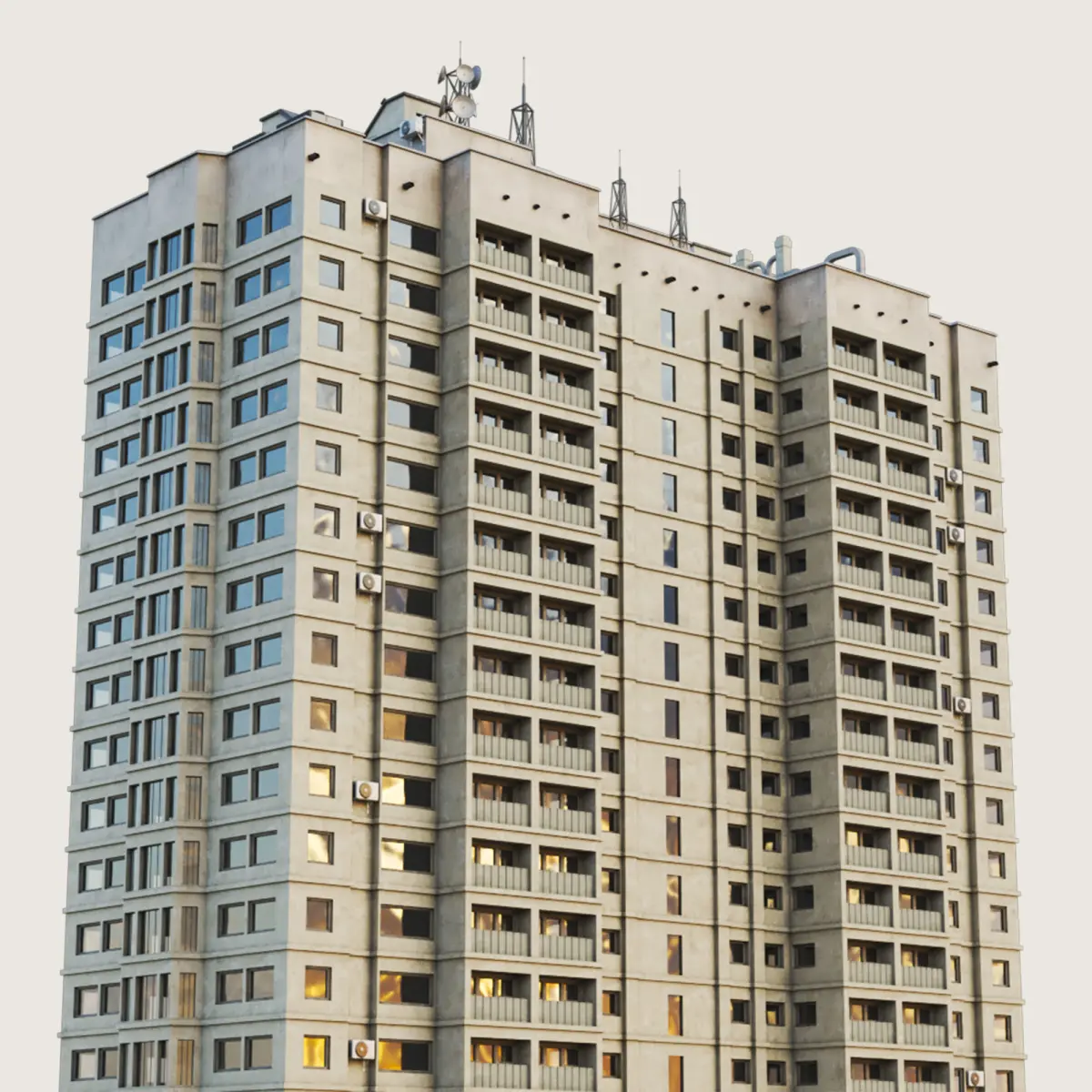 Model is ready to render with materials and textures as a VRay Scene in all of the main software applications (3DS Max, Maya, Cinema 4D, Houdini). Native scene is only in 3DS Max and can be edited only there. Was made for closeup, mid level, background, aerial and street level shots, additional rooftops were placed accordingly. Model is ready to work within Day and Night lighting. Has an internal structure, walls inside, ceilings helping to achieve realistic lighting behavior. Possible to add internal night lighting per area or room. You will never see through the building. Some buildings in the City Generator package have garages and underground parking for better ground blending. There are billboard placed for your local commercial space usage (your own big size print commercials). There is a dirt layer, world scale noises which will only make the building look differently based on its placement.