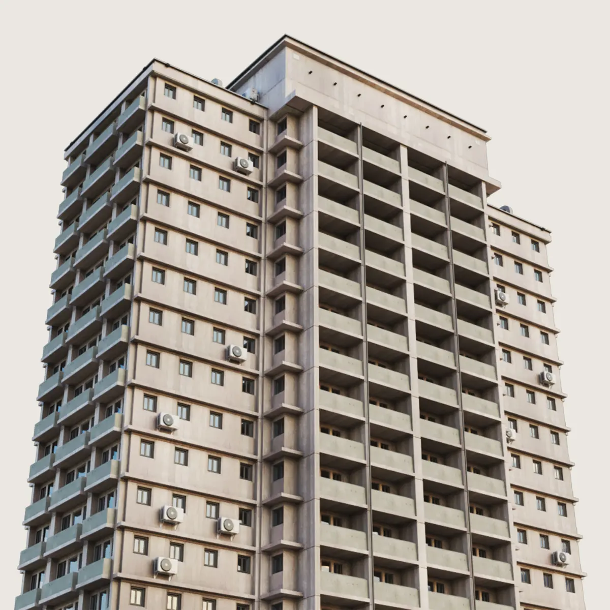 Model is ready to render with materials and textures as a VRay Scene in all of the main software applications (3DS Max, Maya, Cinema 4D, Houdini). Native scene is only in 3DS Max and can be edited only there. Was made for closeup, mid level, background, aerial and street level shots, additional rooftops were placed accordingly. Model is ready to work within Day and Night lighting. Has an internal structure, walls inside, ceilings helping to achieve realistic lighting behavior. Possible to add internal night lighting per area or room. You will never see through the building. Some buildings in the City Generator package have garages and underground parking for better ground blending. There are billboard placed for your local commercial space usage (your own big size print commercials). There is a dirt layer, world scale noises which will only make the building look differently based on its placement.