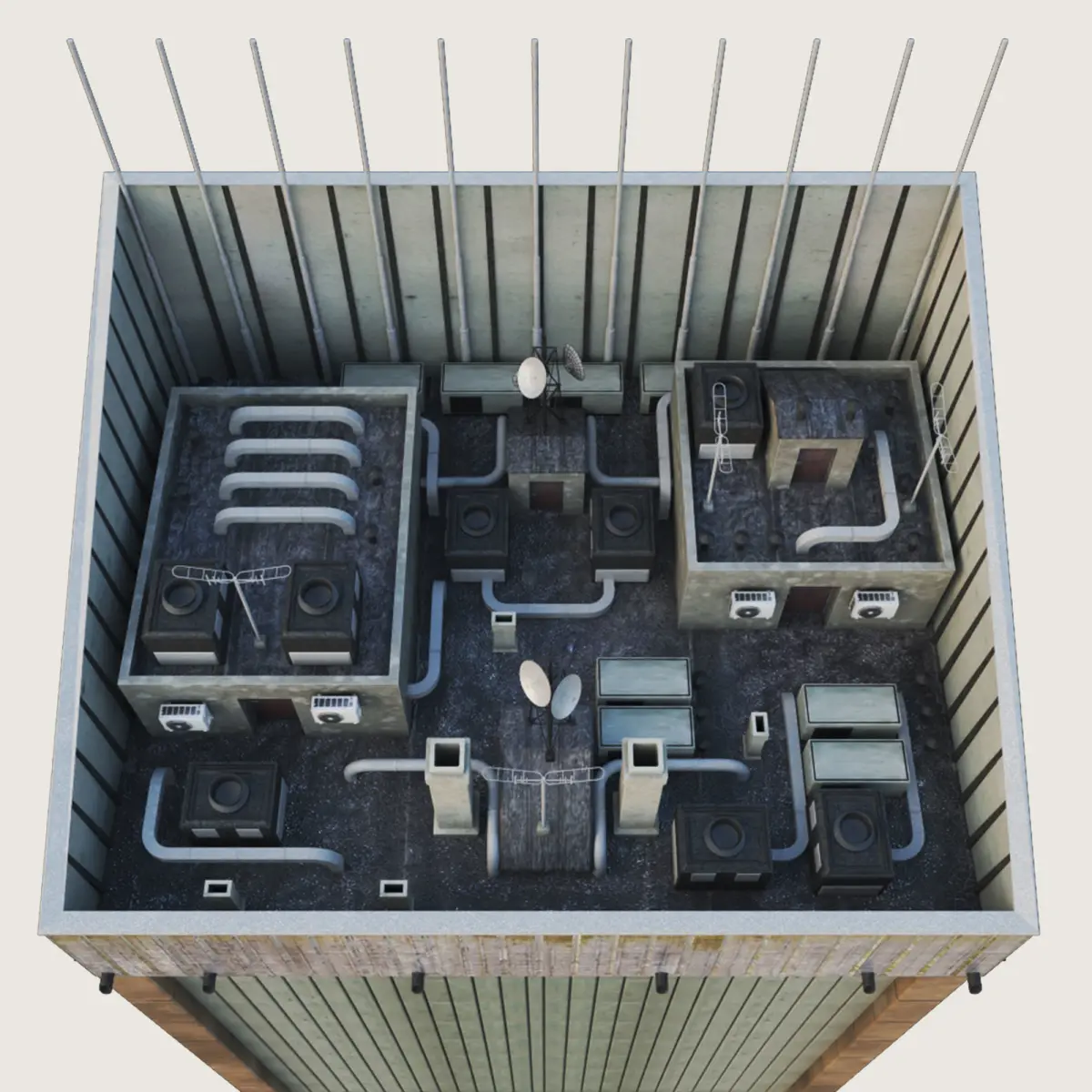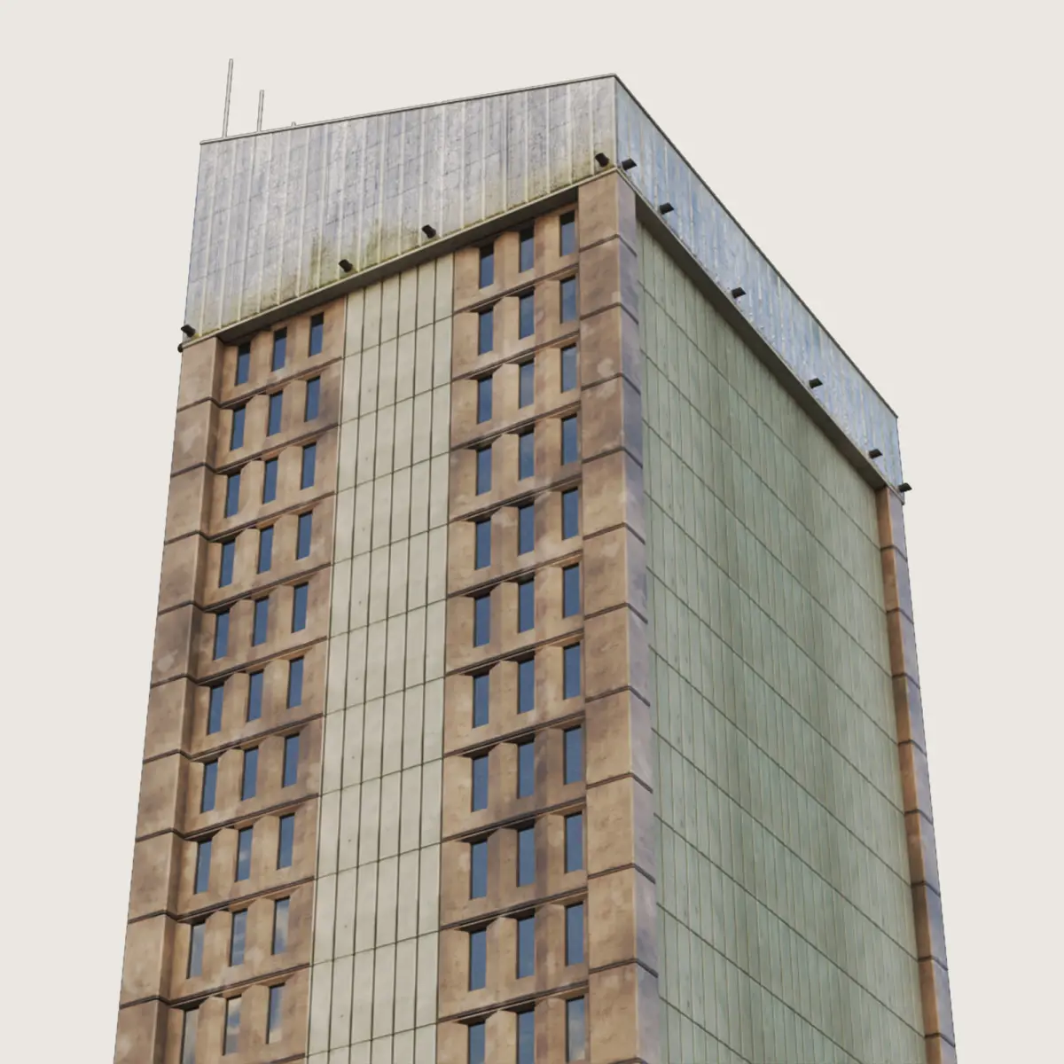 Model is ready to render with materials and textures as a VRay Scene in all of the main software applications (3DS Max, Maya, Cinema 4D, Houdini). Native scene is only in 3DS Max and can be edited only there. Was made for closeup, mid level, background, aerial and street level shots, additional rooftops were placed accordingly. Model is ready to work within Day and Night lighting. Has an internal structure, walls inside, ceilings helping to achieve realistic lighting behavior. Possible to add internal night lighting per area or room. You will never see through the building. Some buildings in the City Generator package have garages and underground parking for better ground blending. There are billboard placed for your local commercial space usage (your own big size print commercials). There is a dirt layer, world scale noises which will only make the building look differently based on its placement.