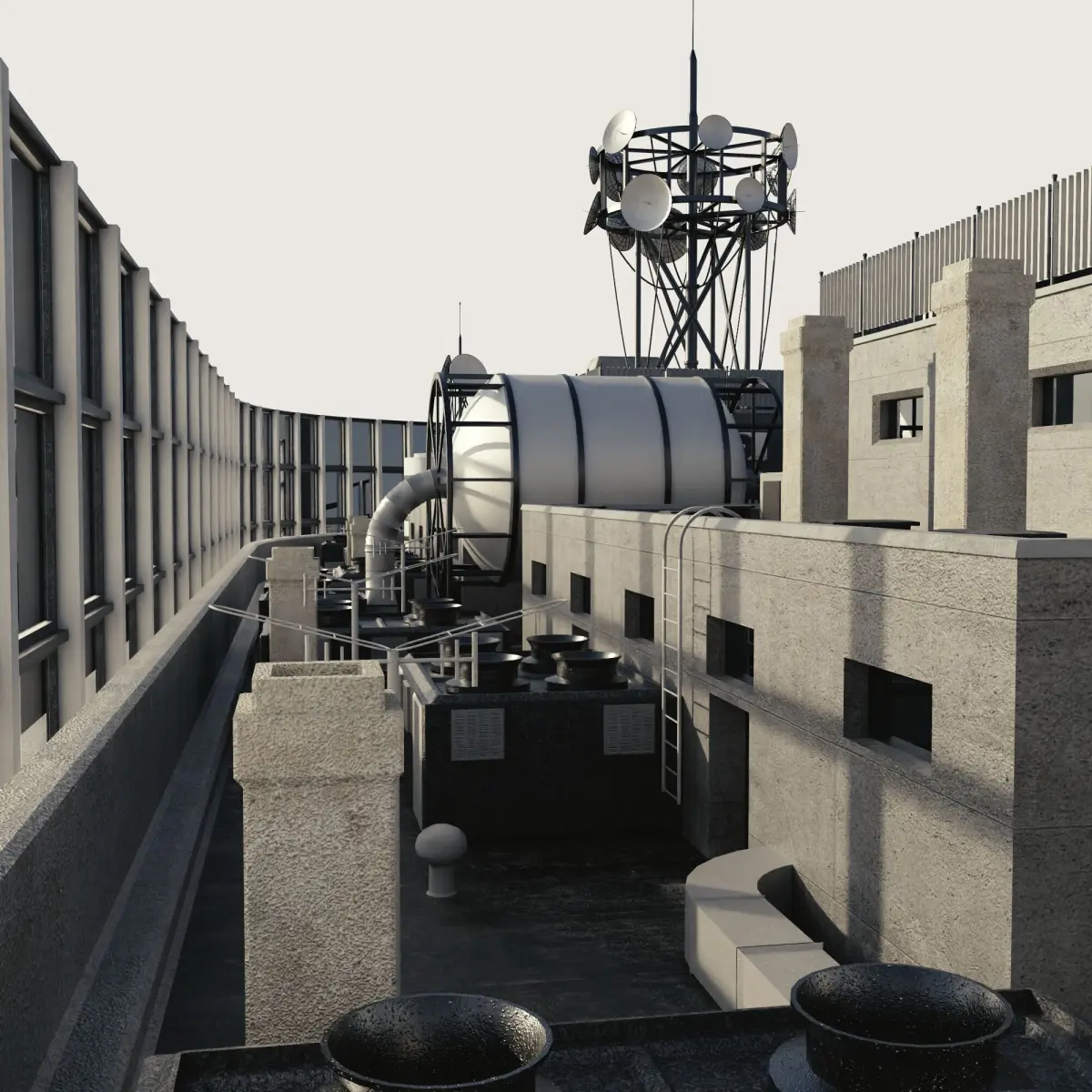 Building Skyscraper City Town Downtown Realistic Suburbs Neighborhood Office Space Work Business Street Industrial Futuristic Warehouse Cityscape Brutalist Futuristic Utopia