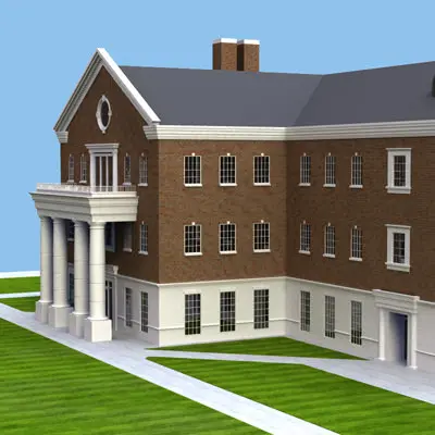 Building Traditional Style 3D Models College Building. Nicely detailed building, good for college administraion, classroom, dorm or library. Previews are rendered using Lightwave.