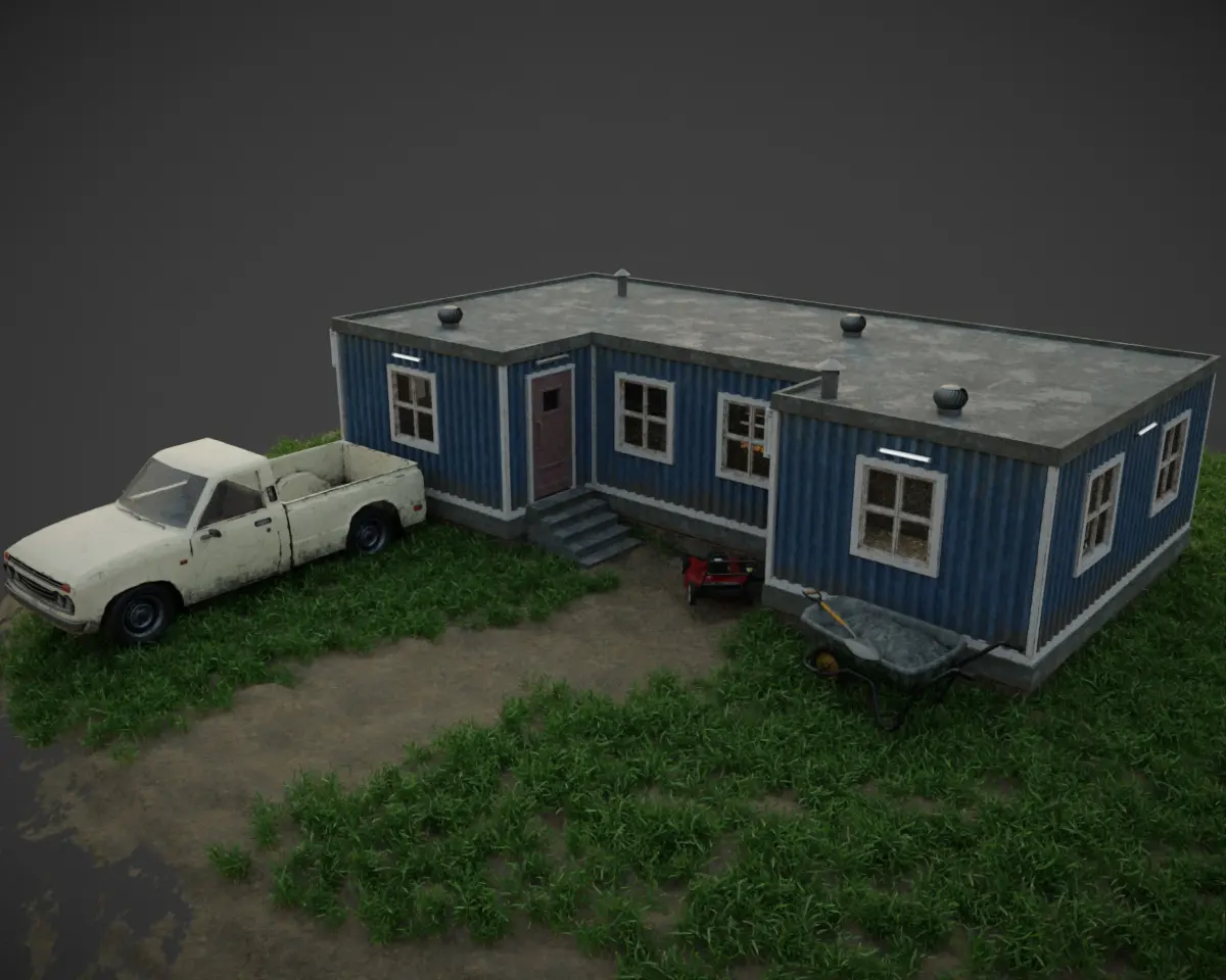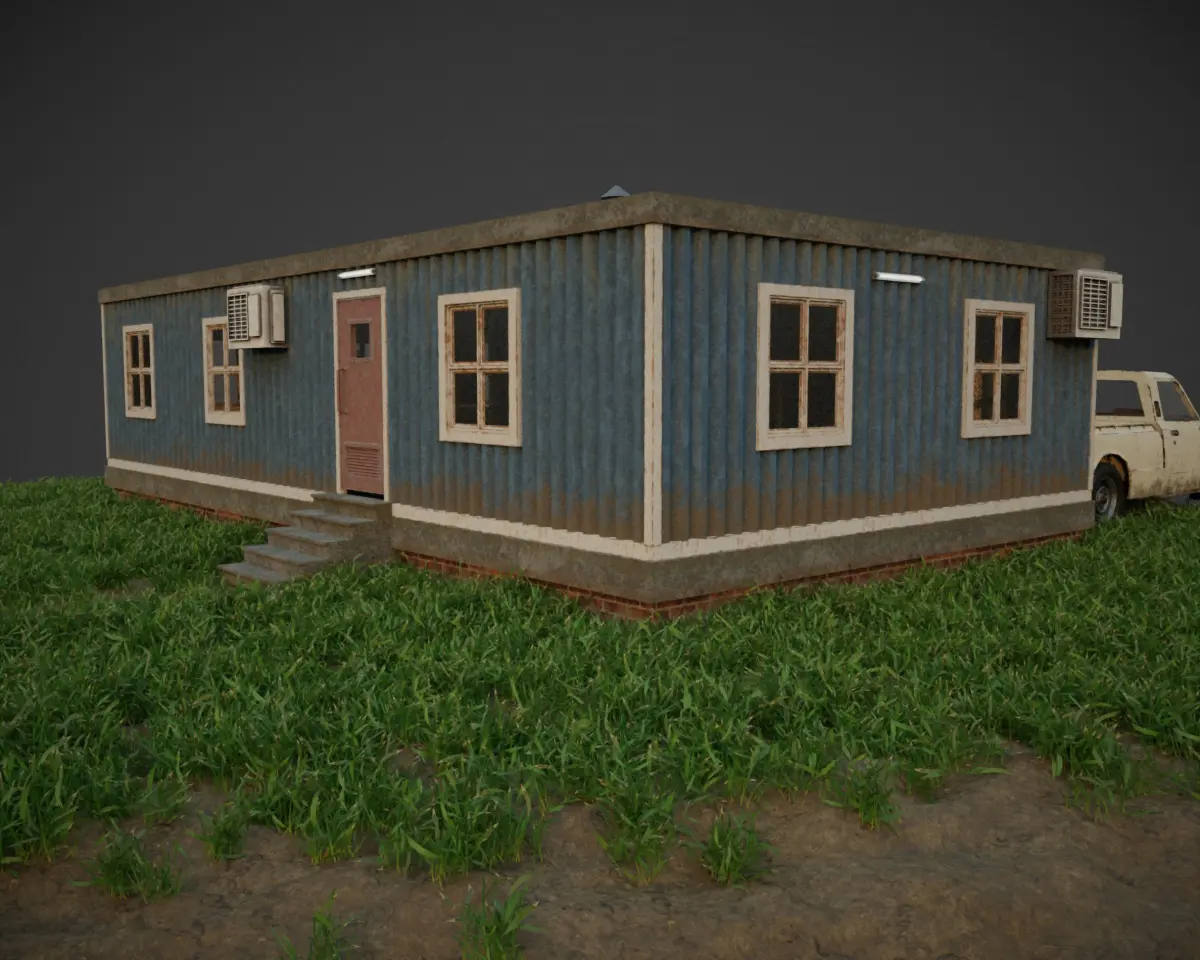 Building :corrugated walls-4k textures concrete base and roof- 4k textures floor interior - tiled texture 2k white wood parts - 4k textures doors- 2k textures