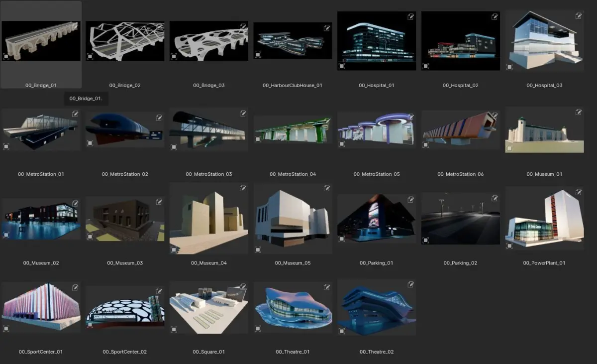 6 Metro station, 3 Bridges, 2 Parking, 6 Museum, 3 Hospital, 1 Data Center, City square, Harbor Club House, 2 Sport Center, 2 Theaters, 5 Malls, 13 Skyscrapers, 36 Houses