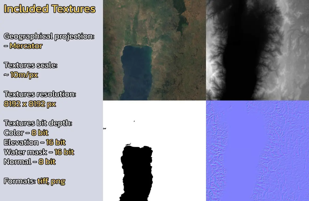 - Textures resolution: ~10m/px
