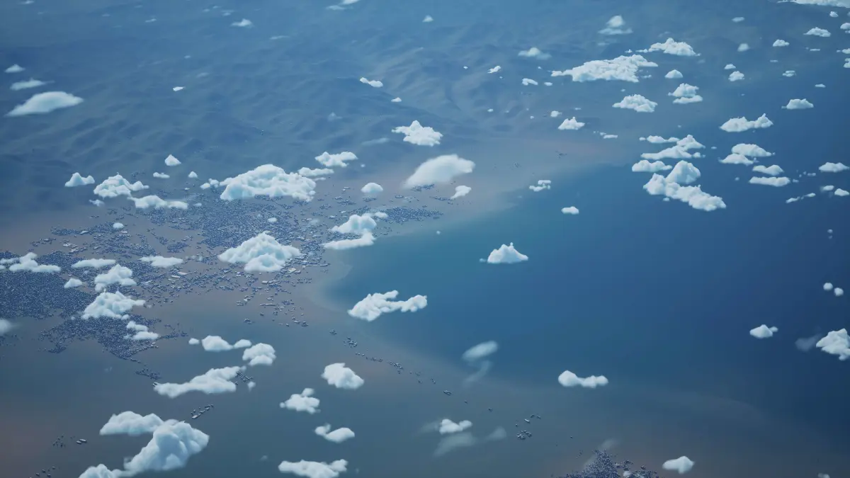 Originally created in Houdini 19. Final images rendered in Houdini. Data source is ASTER GDEM V3, ASTER WATER V1, Open Streep Maps 2022, Copernicus Sentinel 2016.