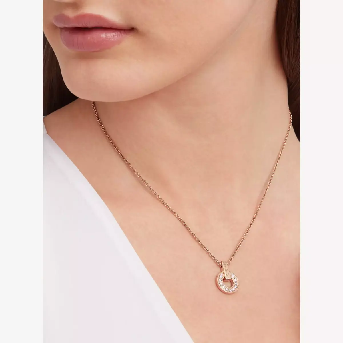 Exact replica of the timeless piece, the holed with diamonds version of the BVLGARI BVLGARI necklace by BULGARI.