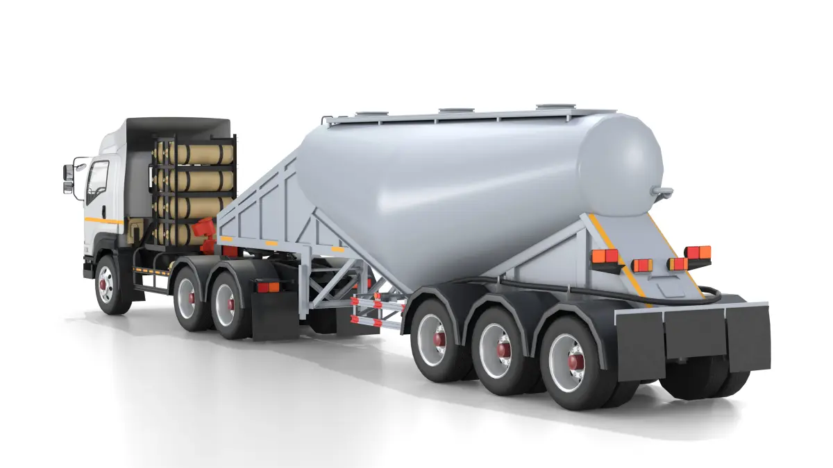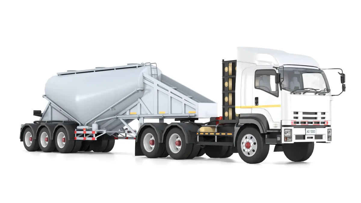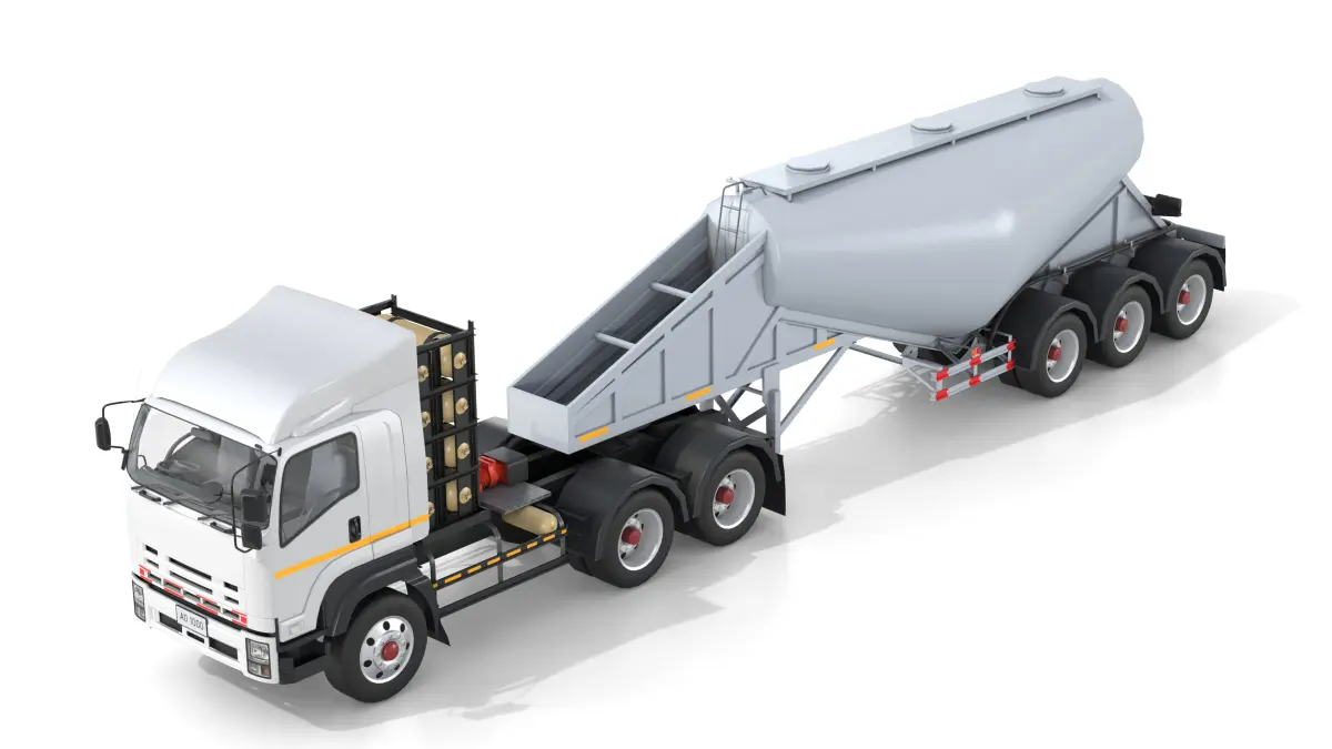 Bulk Cement Trailer Truck with detailed cabin interior and silo trailer structure. The model includes full exterior design, silo tank, cargo structure, and fully modeled truck interior. Suitable for industrial simulation, heavy machinery visualization, and transport-themed games.