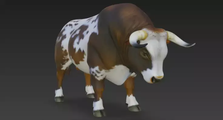 Discover this realistic Dutch Belted bull 3D model, a high-poly scan perfect for your projects. Capture the majestic farm animal with detailed PBR textures, showcasing heritage breed charm. Ideal for wildlife scenes, VFX, and game-ready assets. Photogrammetry ensures lifelike fur and features. Use in Blender or Maya for stunning renders. This 3d bull model brings authentic energy to equestrian or rural environments. Elevate your creations with this top-quality, versatile 3D asset today. This is 3d model under the category of bull, cow, mammal, animal.