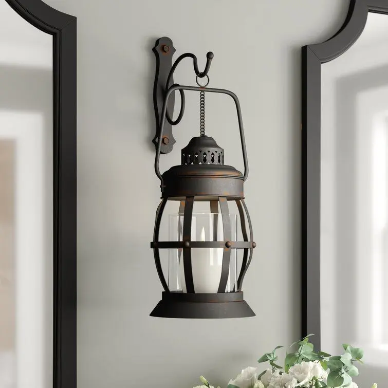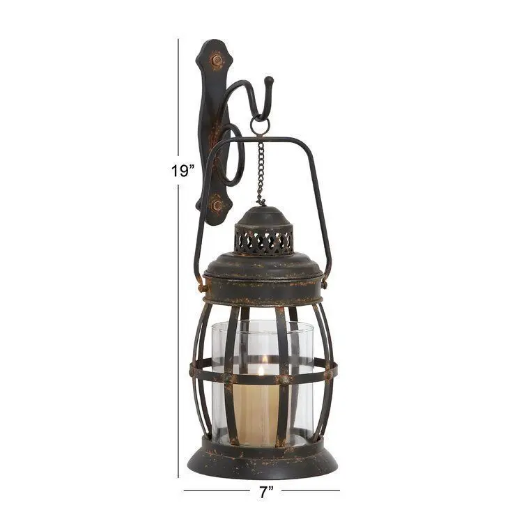 - Candlelight might not be as important in our modern, electric world, but that doesn't mean it can't add something to your home today. Take this sconce, for example: taking cues from old world lanterns, this piece is a great option for adding a traditional-inspired touch for your candles. Crafted from black-finished iron with distressed accents, this piece features a central glass candle holder cradled by a lantern grille. Wall-mounted, this piece accommodates candles up to 3'' in diameter.