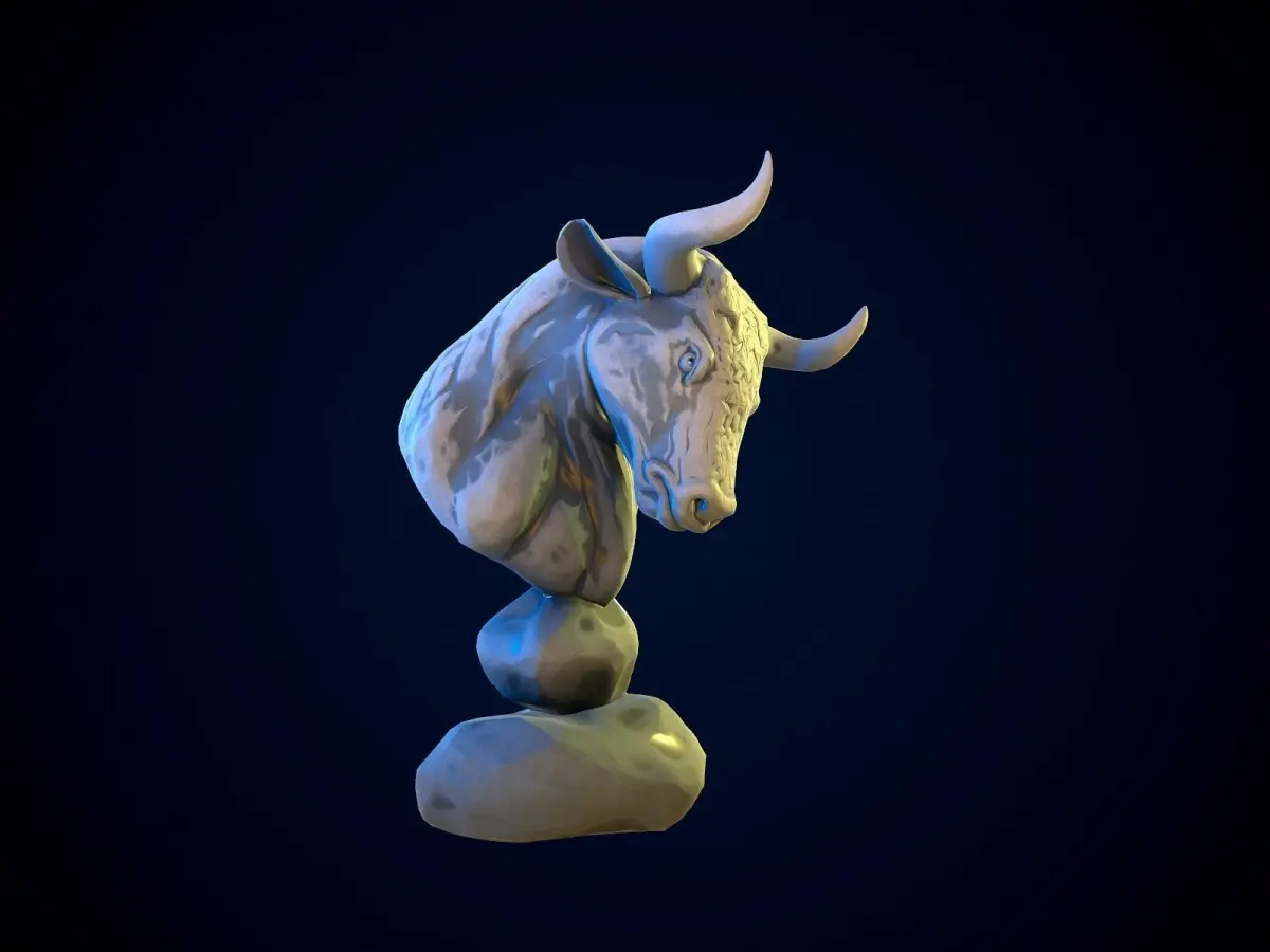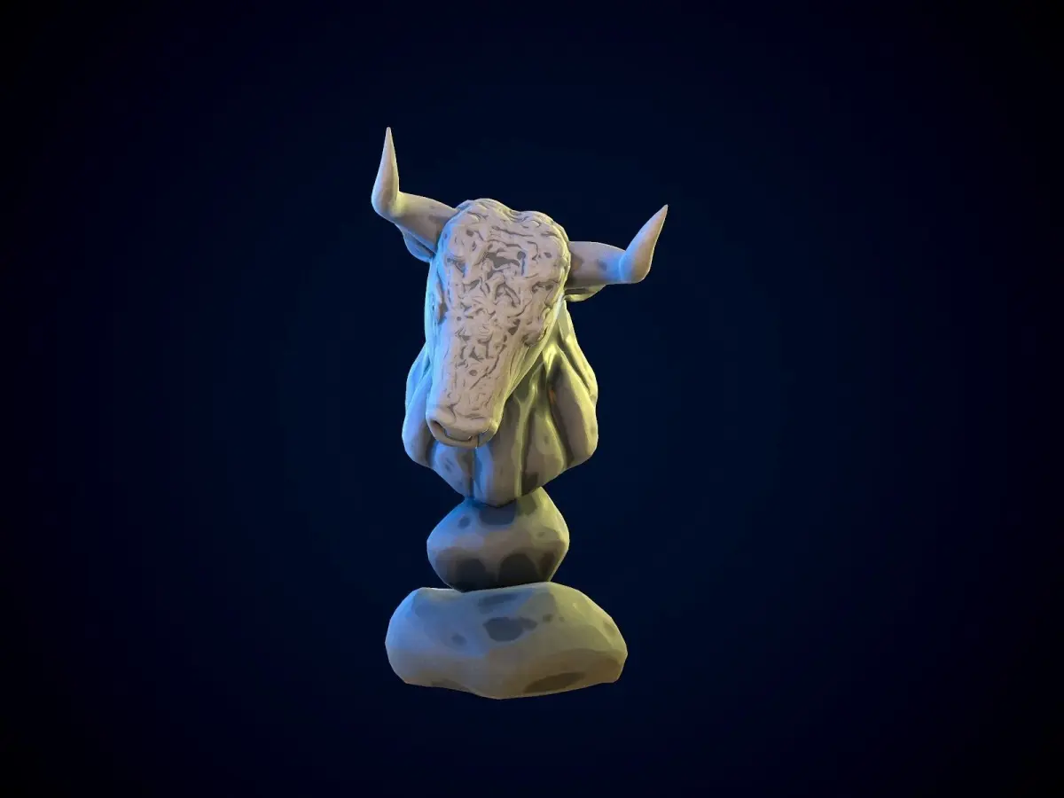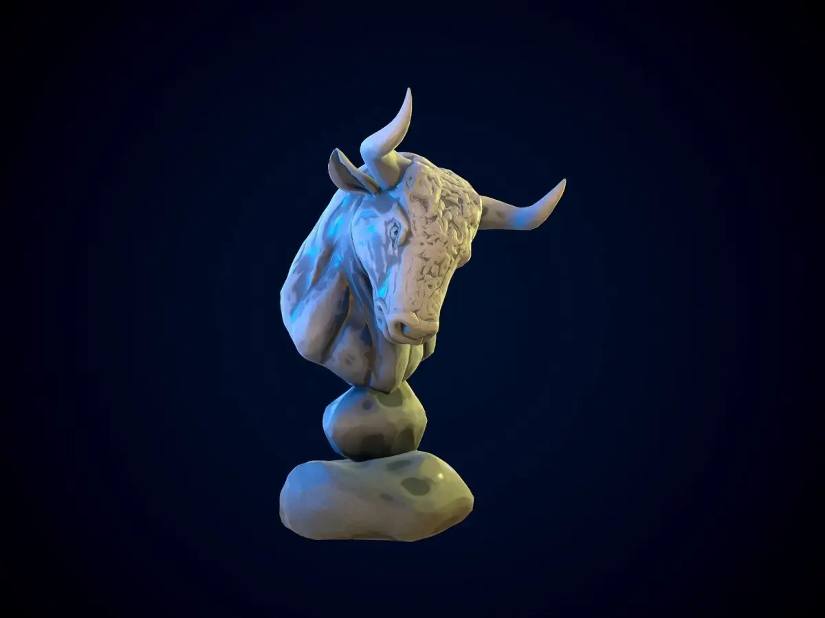 Low poly marble bust of an aggressive fighting bull with a stand made of stones.PBR, 4096*4096, Tif, tris - 12974vert - 7254