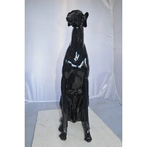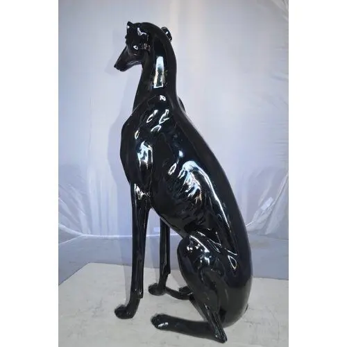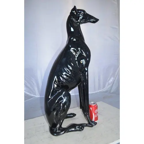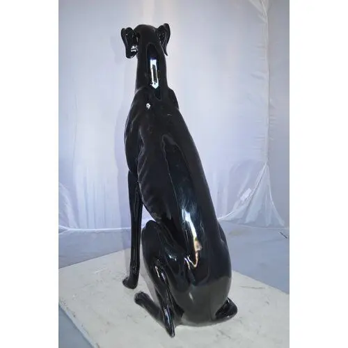 - This charming life-size resin statue depicts a beautiful greyhound dog sitting on the ground. The greyhound dog is a gentle and intelligent breed whose combination of long, powerful legs, deep chest, flexible spine, and slim build allows it to reach average race speeds exceeding 64 kilometers per hour.