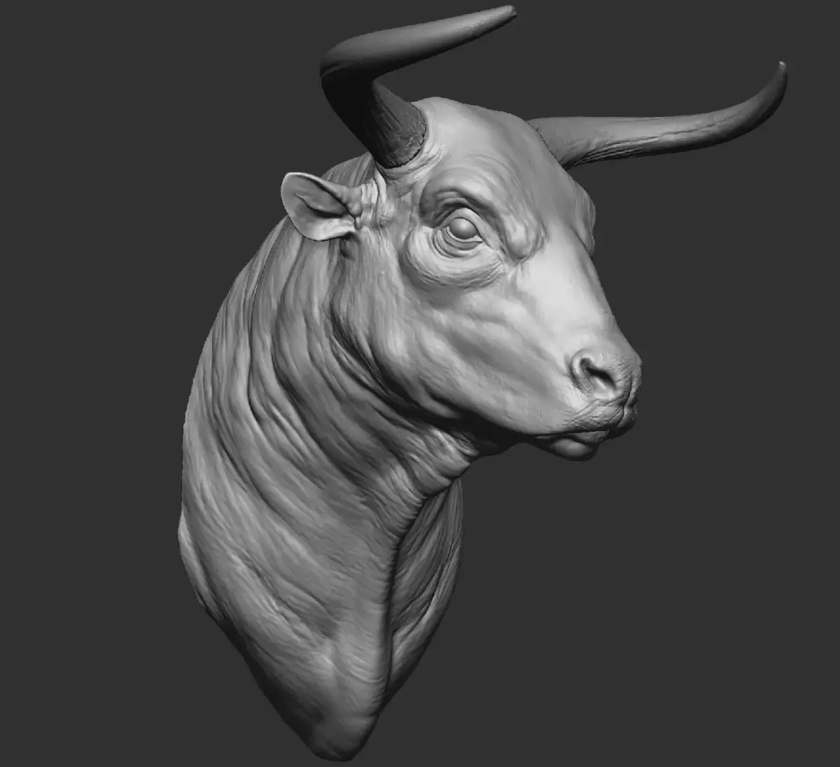 Realistic bull head bust designed for 3D printing. The model combines naturalistic anatomy with horn shapes inspired by ancient breeds of bulls, giving it a timeless and monumental look. Perfect for art projects, sculptures, home decor, collectibles, or historical-themed works.