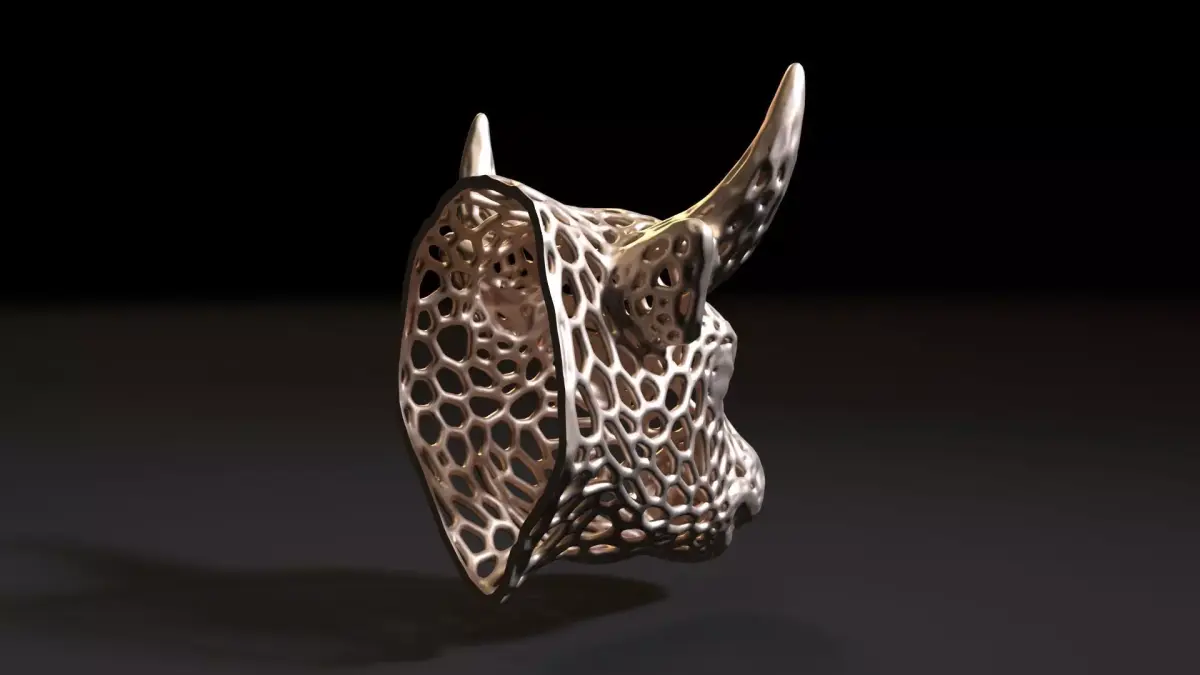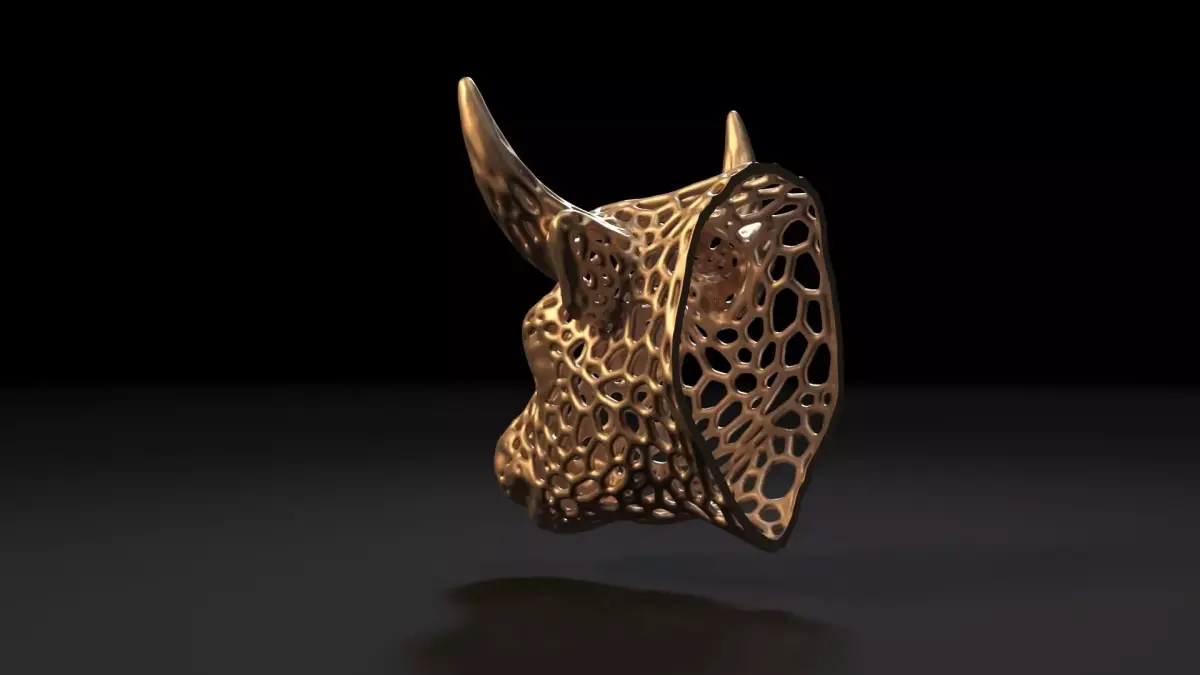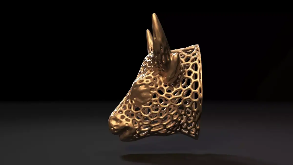 We present a unique bull's head model made in the modern Voronoi style. This elegant and expressive design combines the strength and character of a bull with exquisite geometric patterns created in the Raven technique, which gives the model a modern and artistic look.